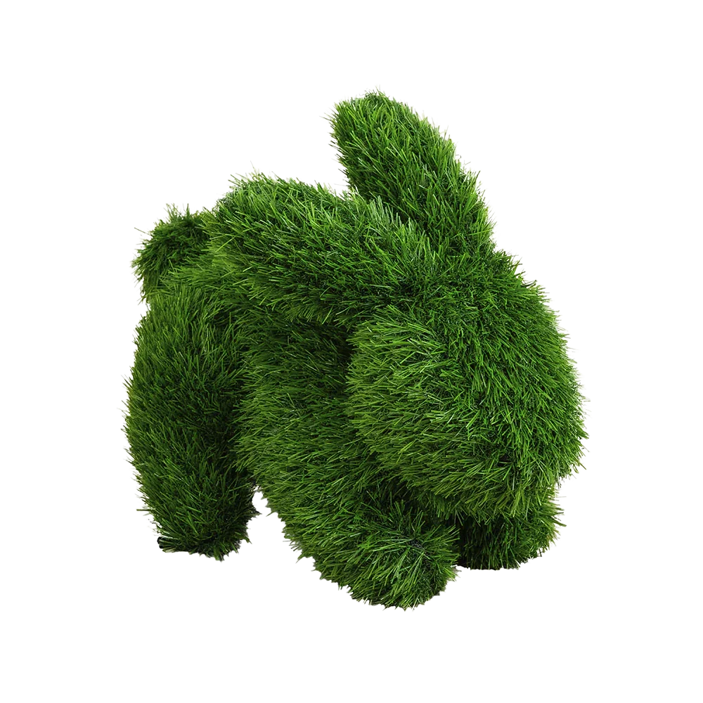 Le Lapin de Jardin est une charmante figurine décorative de 4,25 m de haut, conçue pour ressembler à un lapin recouvert d'un feuillage luxuriant et vert, semblable à de l'herbe. Parfait pour ajouter une touche de fantaisie à n'importe quel jardin, il est doté de griffes à sa base pour le fixer solidement au sol.