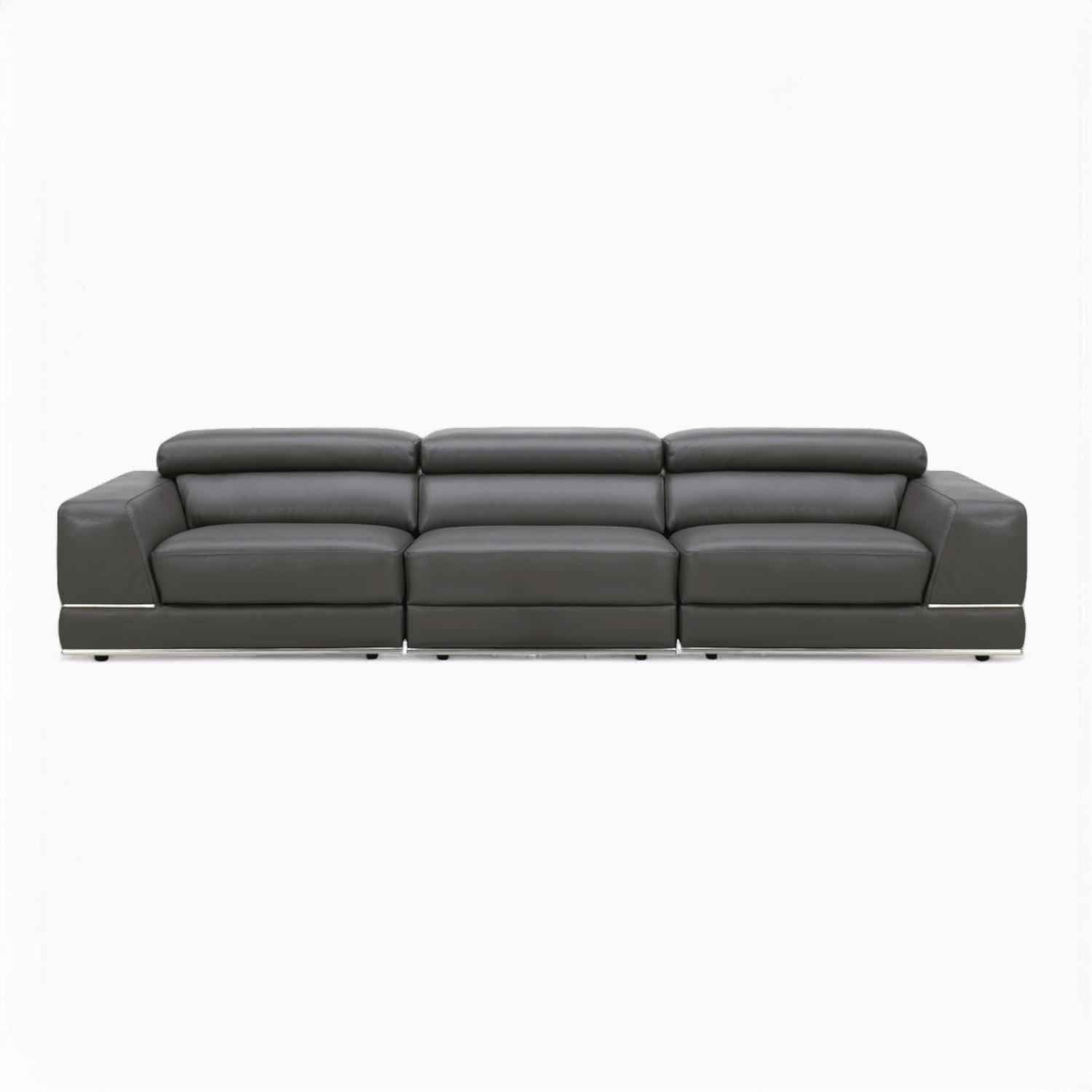 Offrez-vous luxe et élégance avec le canapé modulable 3 pièces Amadeo en Gris Éléphant, où sophistication et confort se marient en parfaite harmonie. Revêtu d'un somptueux cuir italien, le canapé Amadeo arbore un charme intemporel, alliant durabilité et confort inégalé. Revêtu d'un luxueux cuir gris foncé, il dégage une élégance discrète. Sa teinte riche apporte profondeur et caractère à la pièce, s'intégrant parfaitement à tout intérieur. Pour un confort optimal, le canapé Amadeo est équipé d'un appui-tête réglable manuellement et d'un siège coulissant aux extrémités, vous permettant de personnaliser votre assise selon vos préférences.