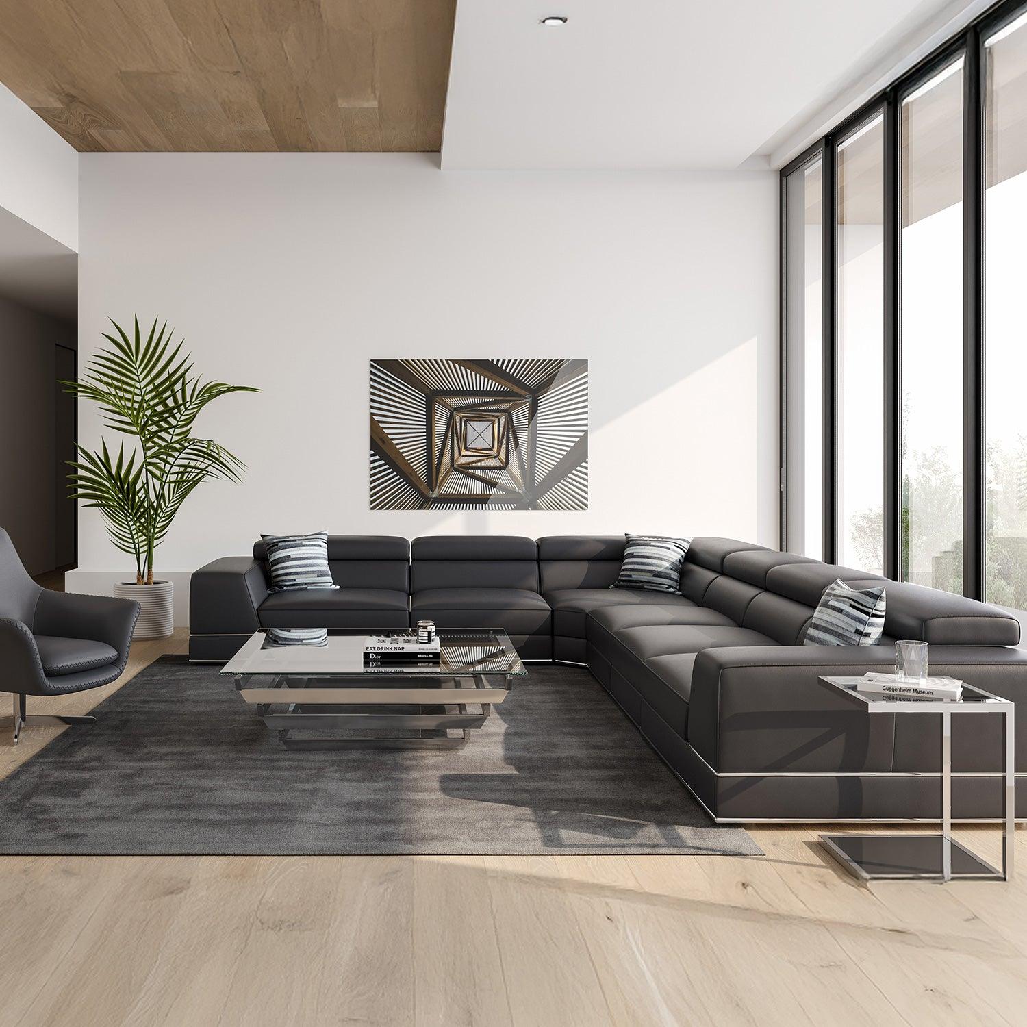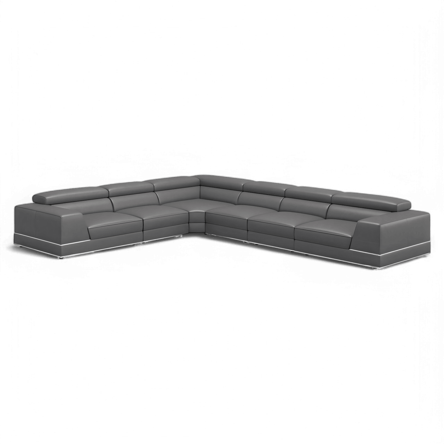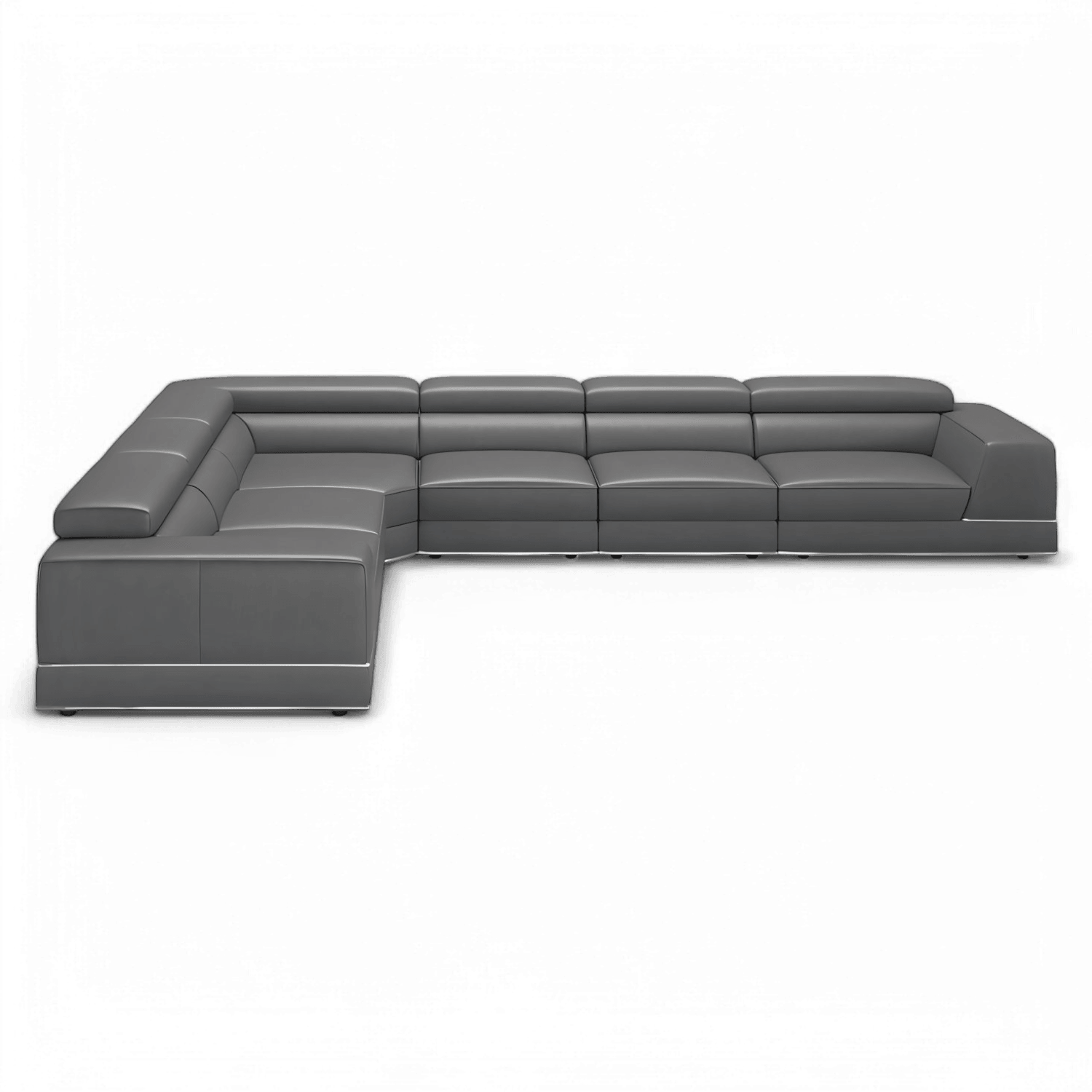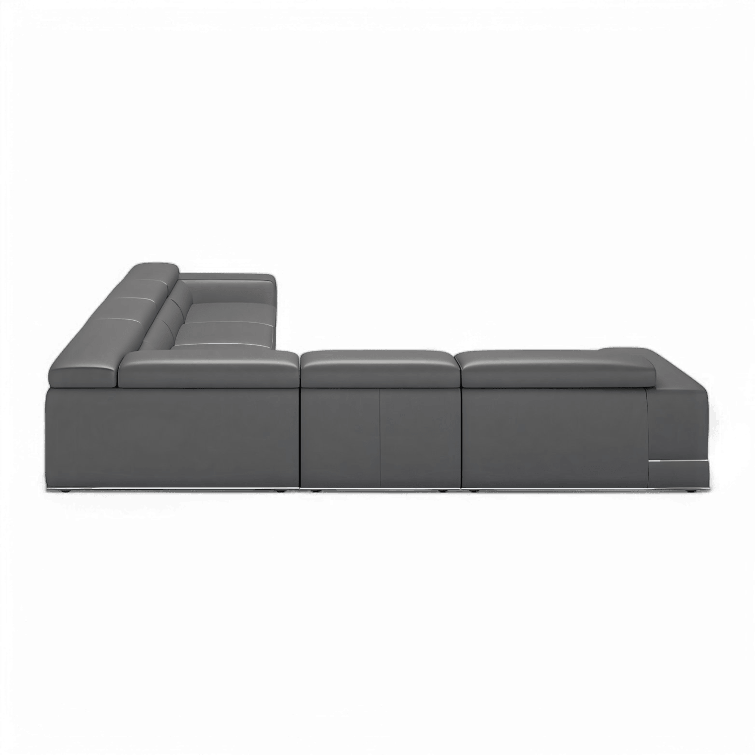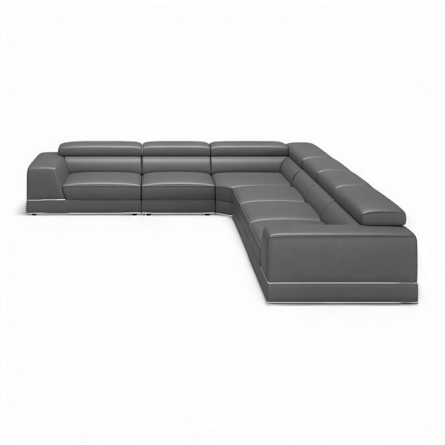 Offrez-vous le luxe et le style avec le canapé d'angle modulaire extensible Amadeo en gris éléphant, où sophistication et confort se marient en parfaite harmonie. Revêtu d'un somptueux cuir italien, le canapé Amadeo affiche un charme intemporel, alliant durabilité et confort inégalé. Revêtu d'un luxueux cuir gris foncé, il dégage une élégance discrète. Sa teinte riche apporte profondeur et caractère à la pièce, s'intégrant parfaitement à tout intérieur. Pour un confort optimal, le canapé Amadeo est équipé d'un appui-tête réglable manuellement et d'un siège coulissant aux extrémités, vous permettant de personnaliser votre assise selon vos préférences.