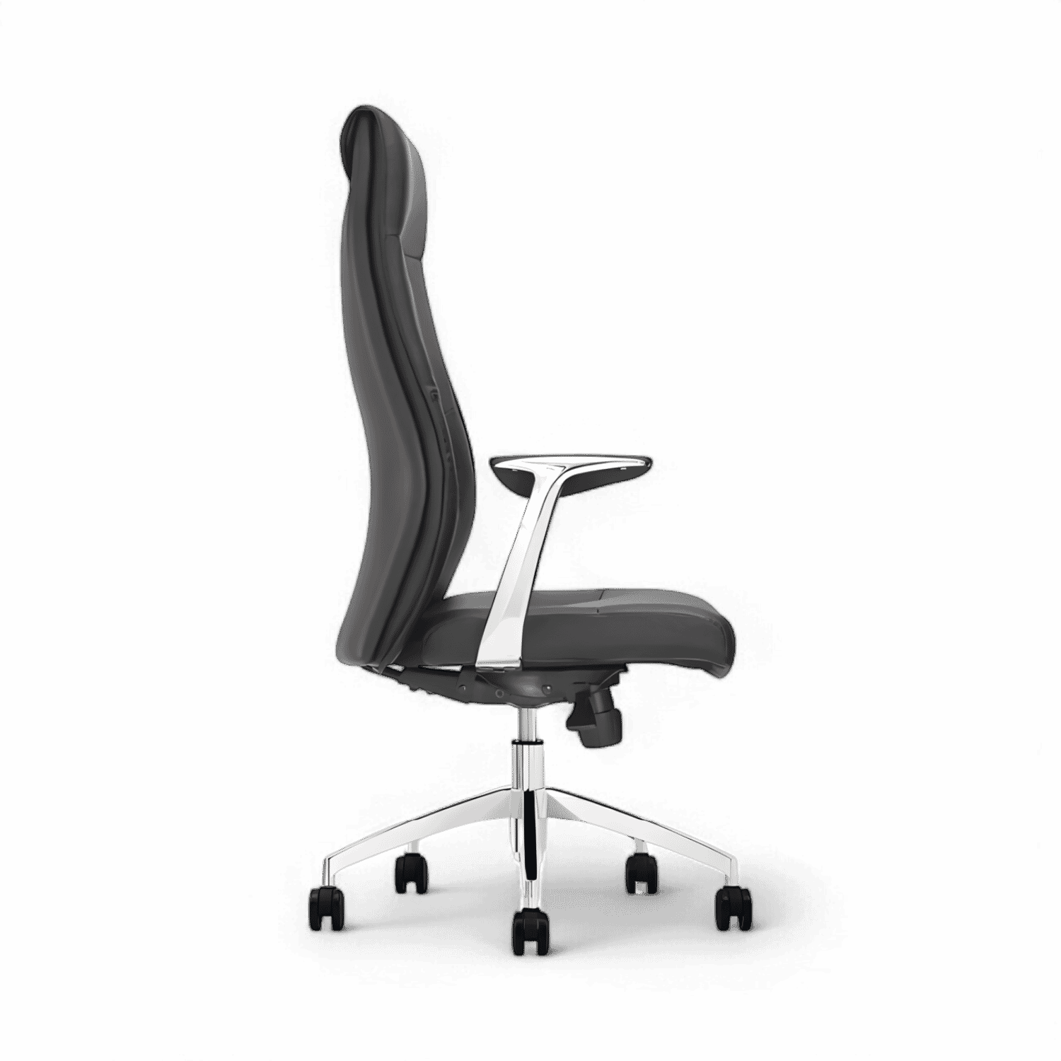 Accoudoirs et siège en similicuir, pieds en aluminium poli, pivotant, réglage de la hauteur du siège de 17 3/4' à 20 1/2', réglage de l'inclinaison du dossier avec 3 positions de verrouillage, capacité de poids : 250 lb