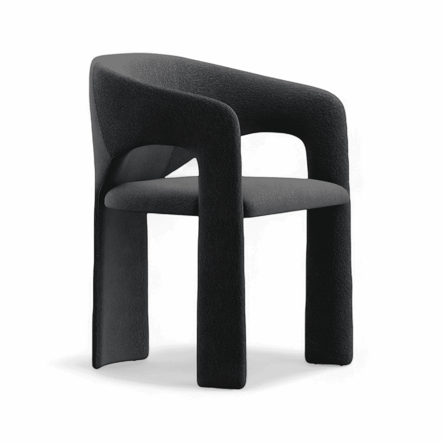 La chaise de salle à manger Aria est une pièce élégante et moderne alliant design contemporain et élégance fonctionnelle. Son dossier arrondi épouse parfaitement la silhouette, offrant confort et style. Dotée de trois pieds subtilement fuselés, elle arbore une silhouette audacieuse et un pied arrière plus large pour une stabilité accrue. L'ensemble est luxueusement recouvert d'un riche tissu bouclé noir, offrant une surface douce et texturée qui rehausse son élégance. Idéale pour les salles à manger ou comme siège d'appoint, la chaise de salle à manger Aria allie charme minimaliste et savoir-faire raffiné.