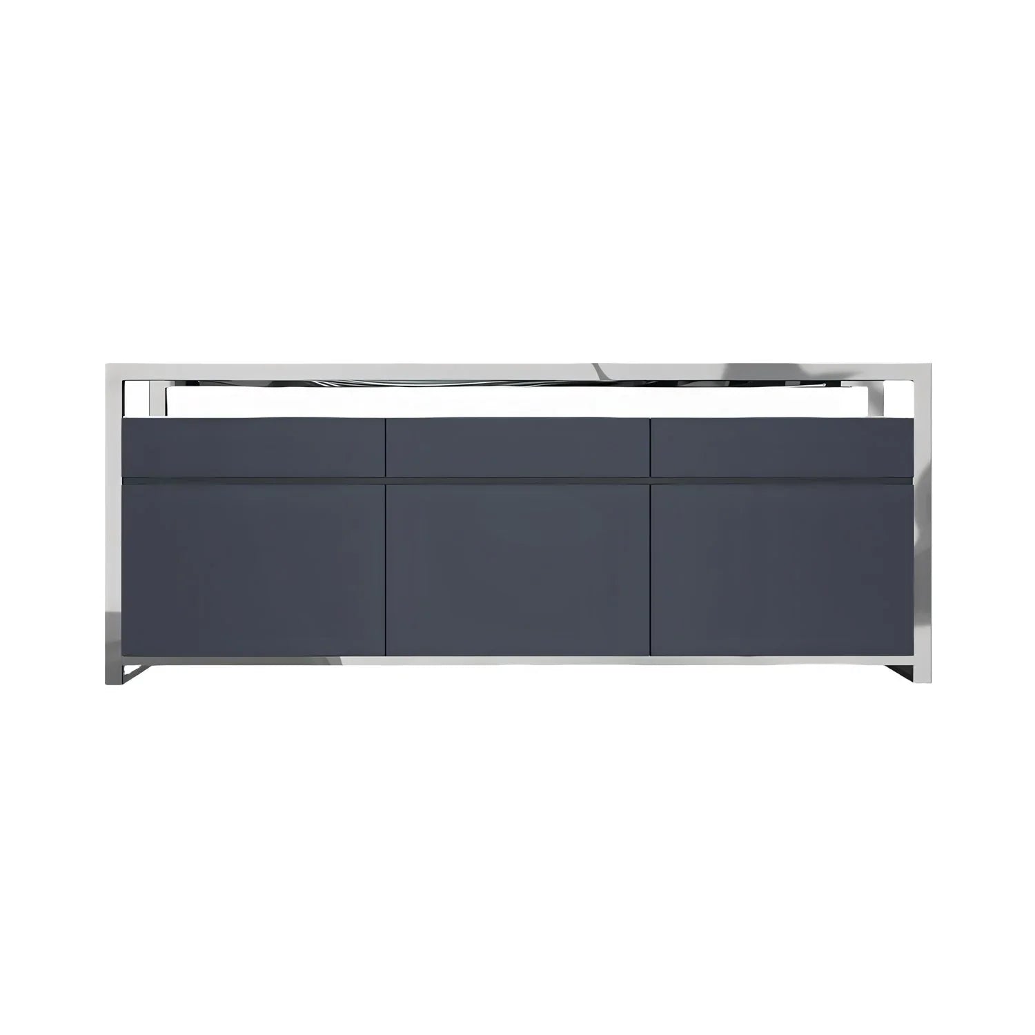 Ce buffet Bari gris d'inspiration française s'intègre parfaitement à tous les espaces grâce à ses nombreux rangements et à ses finitions élégantes. Un cadre en acier inoxydable soutient la table du buffet pour un style unique qui ne passera pas inaperçu. Maîtrisant habilement le style contemporain, ce buffet présente une composition minimaliste et élégante, parfaite pour toute pièce moderne. Appréciez l'esthétique épurée de votre salle à manger en l'associant à des touches d'acier inoxydable et à une décoration brillante.