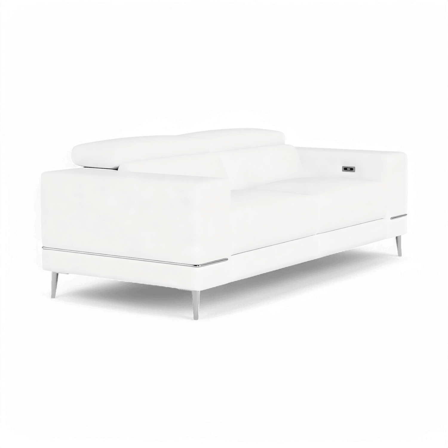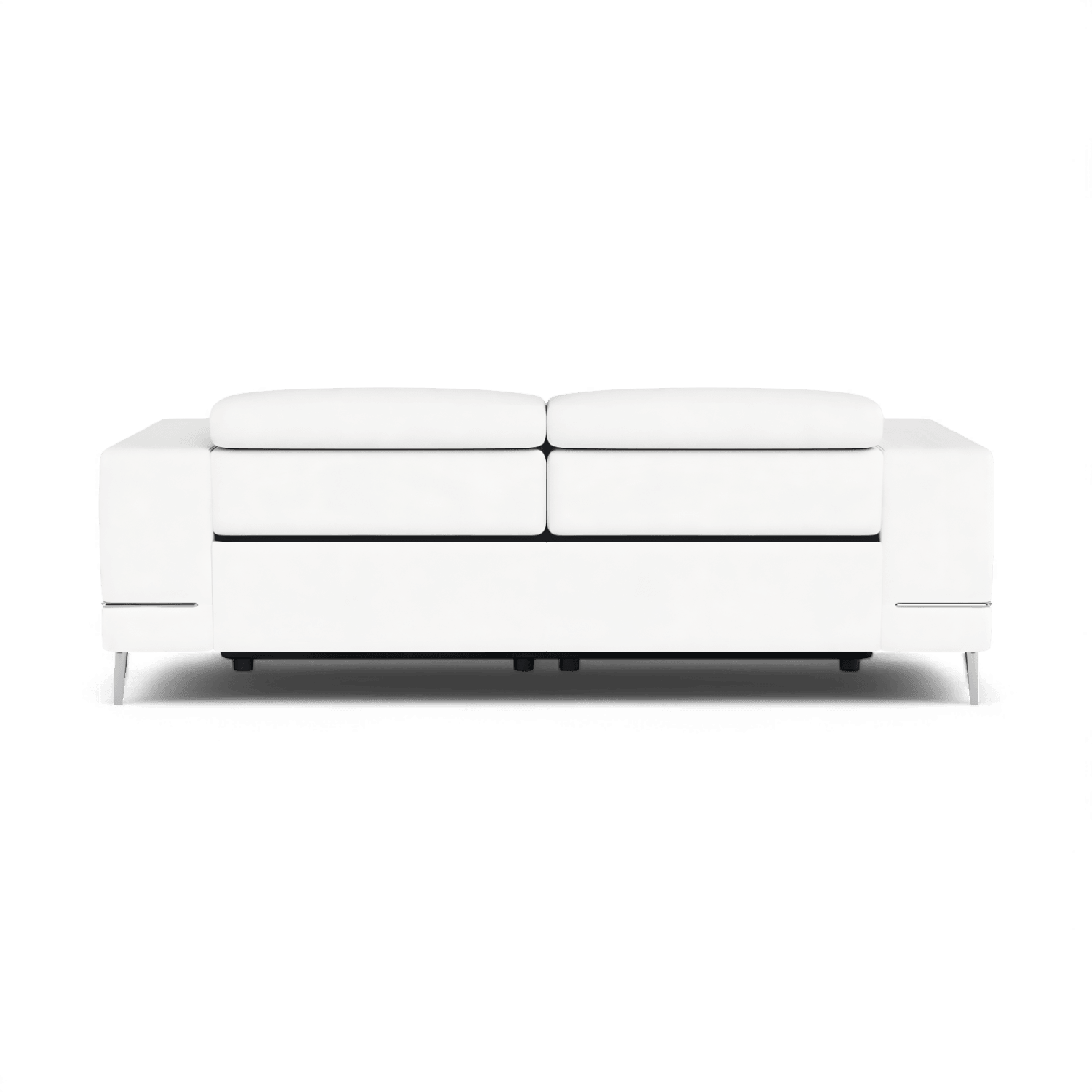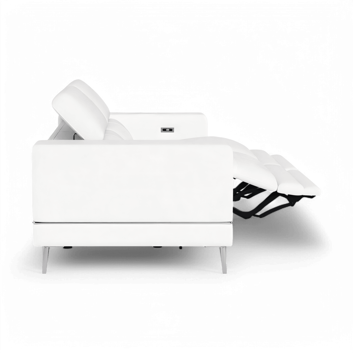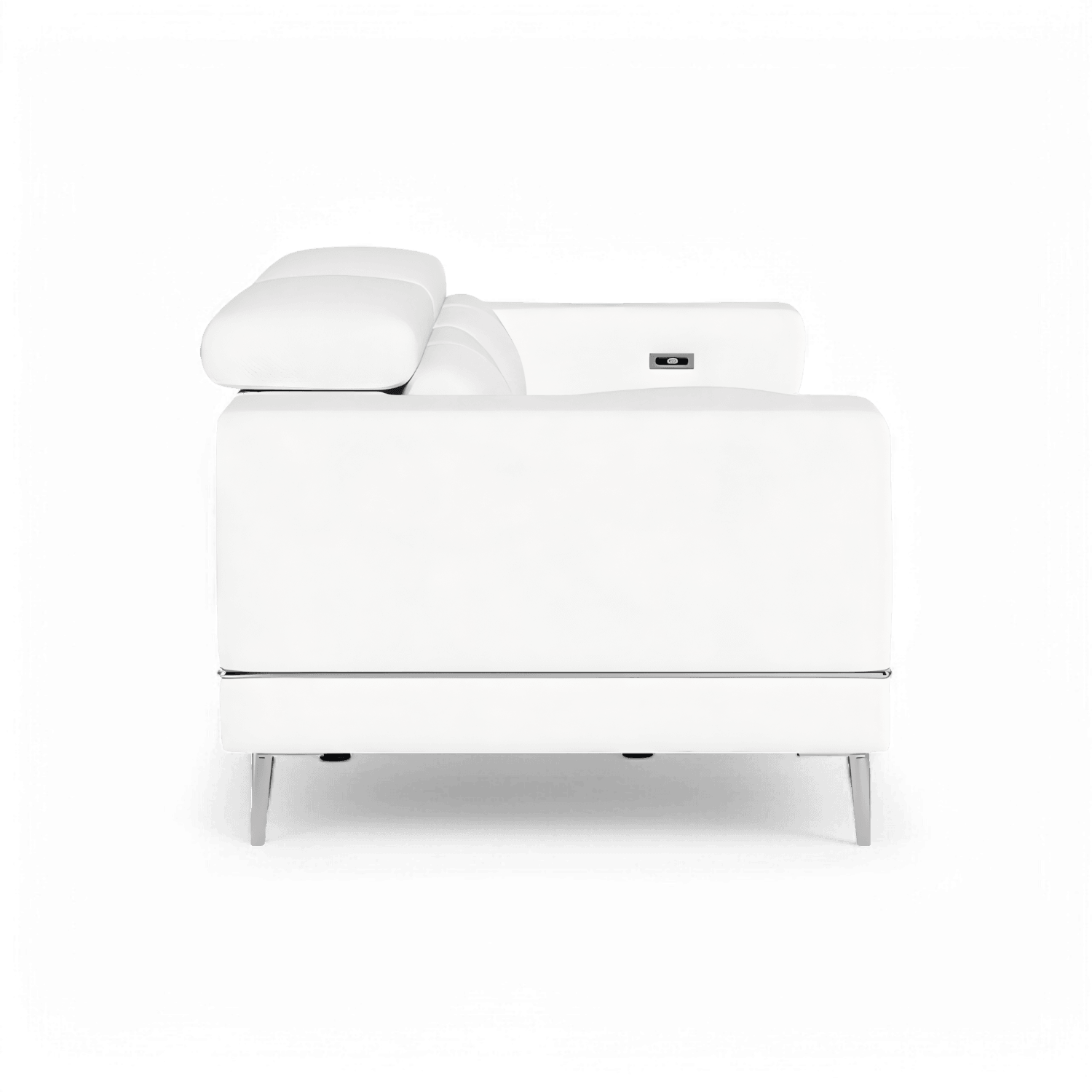 Plongez dans un état de détente absolue avec le canapé Bergamo Motion blanc. Revêtu de cuir souple et d'une mousse enveloppante, ce canapé design est doté d'appuie-têtes et de repose-jambes mobiles pour un confort optimal. Ses pieds en métal assurent la stabilité tout en offrant la hauteur nécessaire. Pour s'incliner, il suffit d'appuyer sur le bouton situé à l'intérieur de l'accoudoir. Également disponible en gris foncé.