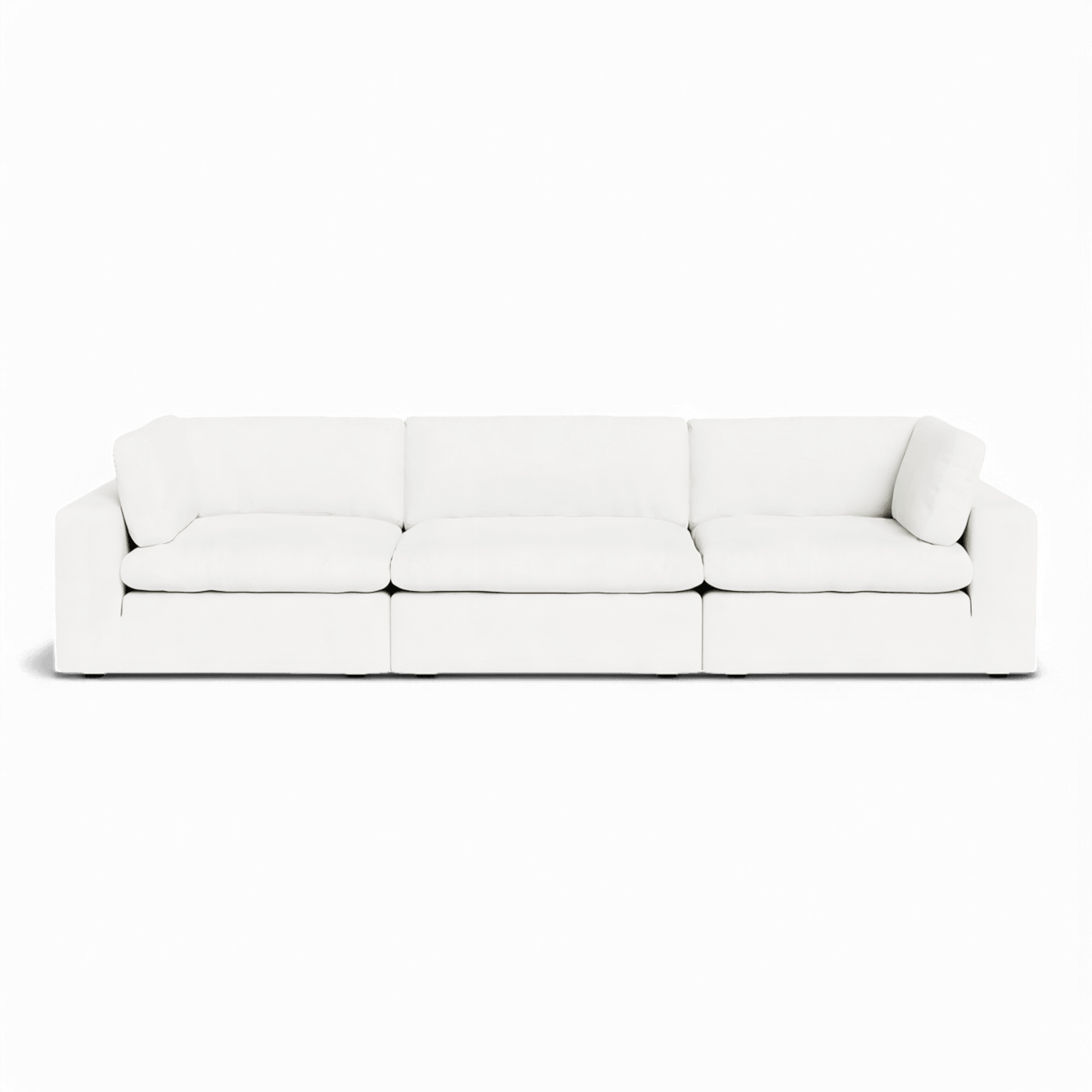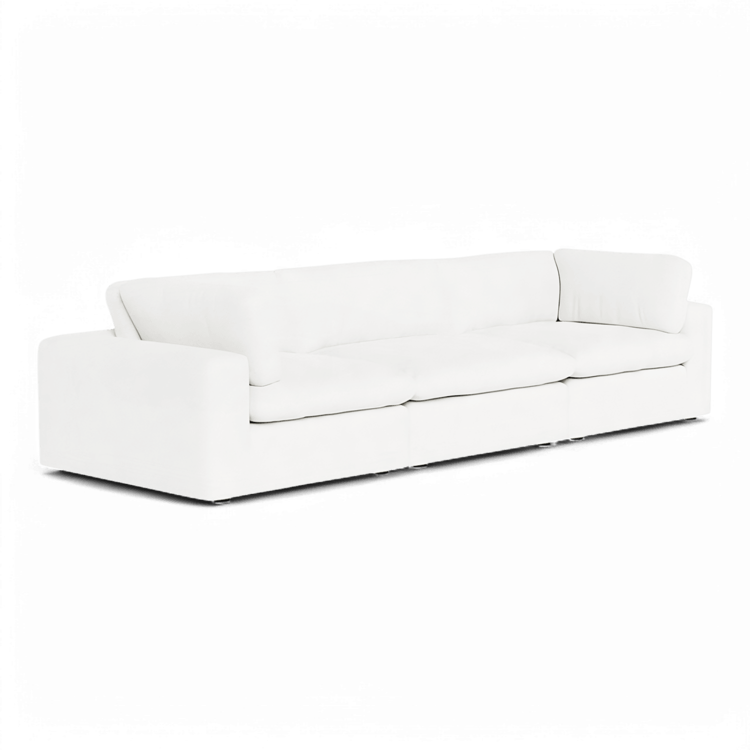 D'un chic naturel, le canapé modulable Bloom 3 pièces blanc est contemporain et offre une touche de douceur. Ses lignes droites et son dossier carré lui confèrent une touche de modernité, tandis que ses coussins arrondis créent une atmosphère chaleureuse. Un tissu élégant et résistant aux taches enveloppe cette pièce unique, facilitant le nettoyage après un déversement. Les coussins d'assise et de dossier garnis de duvet de canard offrent une douceur onctueuse.