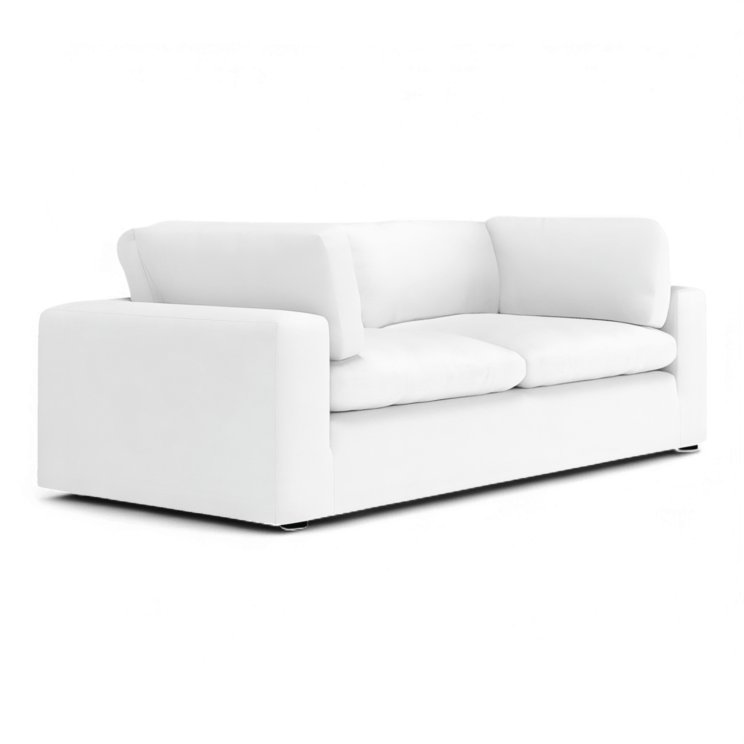 Notre nouveau canapé 3 places Bloom blanc deviendra le point central de votre salon et le lieu idéal pour se détendre. Sa structure épaisse et solide attire tous les regards, tandis que ses coussins garnis de plumes et de duvet de canard offrent un confort exceptionnel. Il est disponible en bleu profond, gris orage et blanc immaculé, avec un tissu haute performance et antitache.
