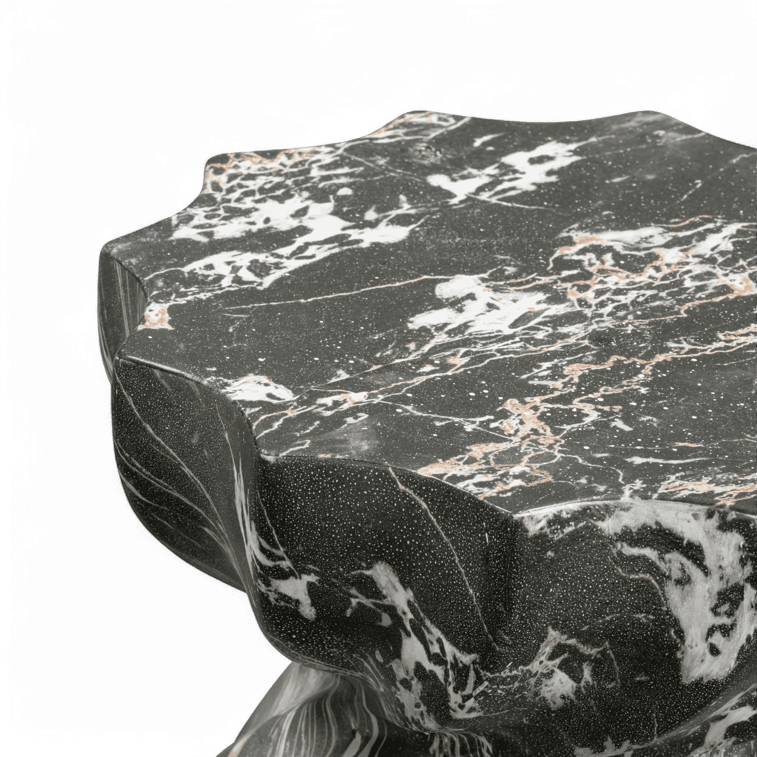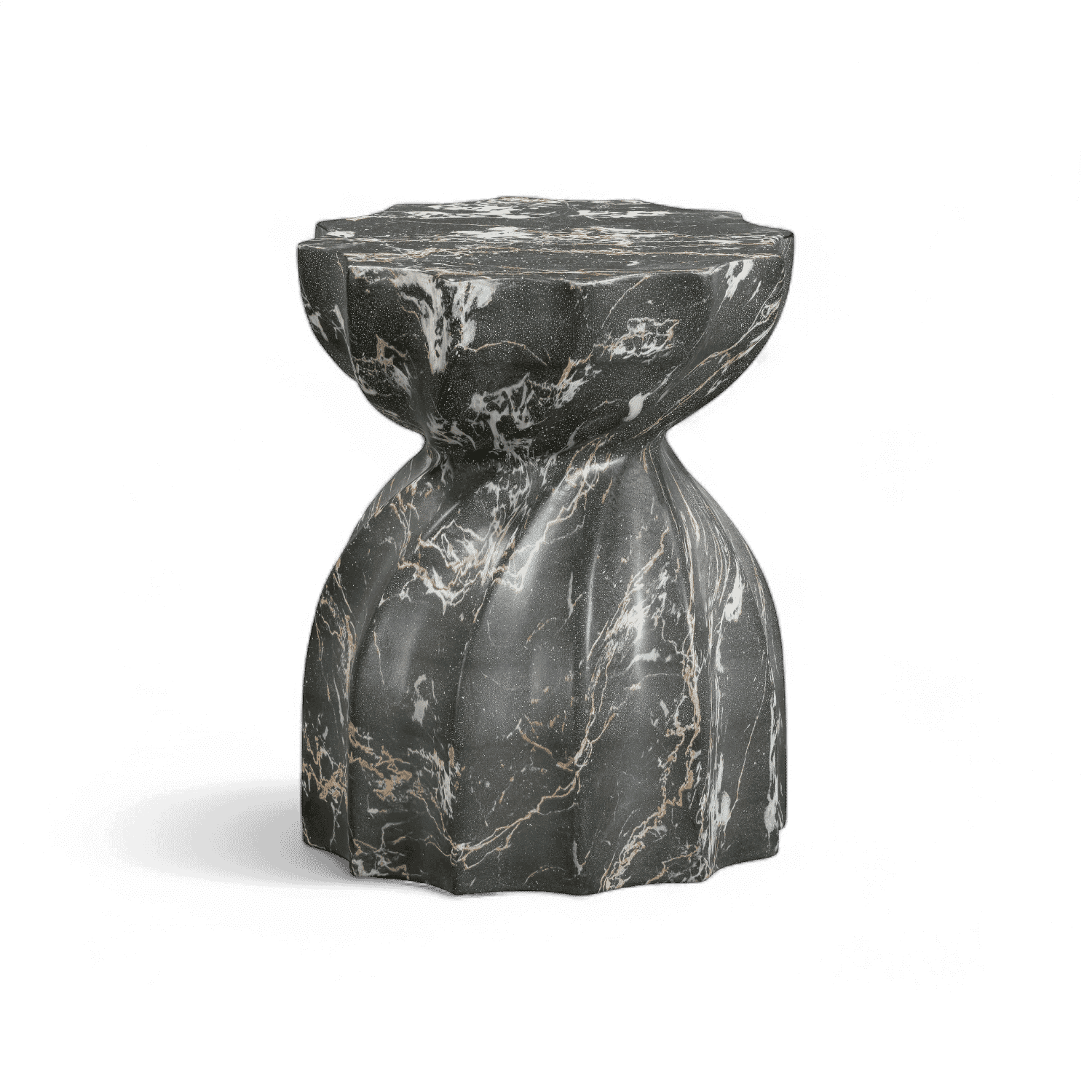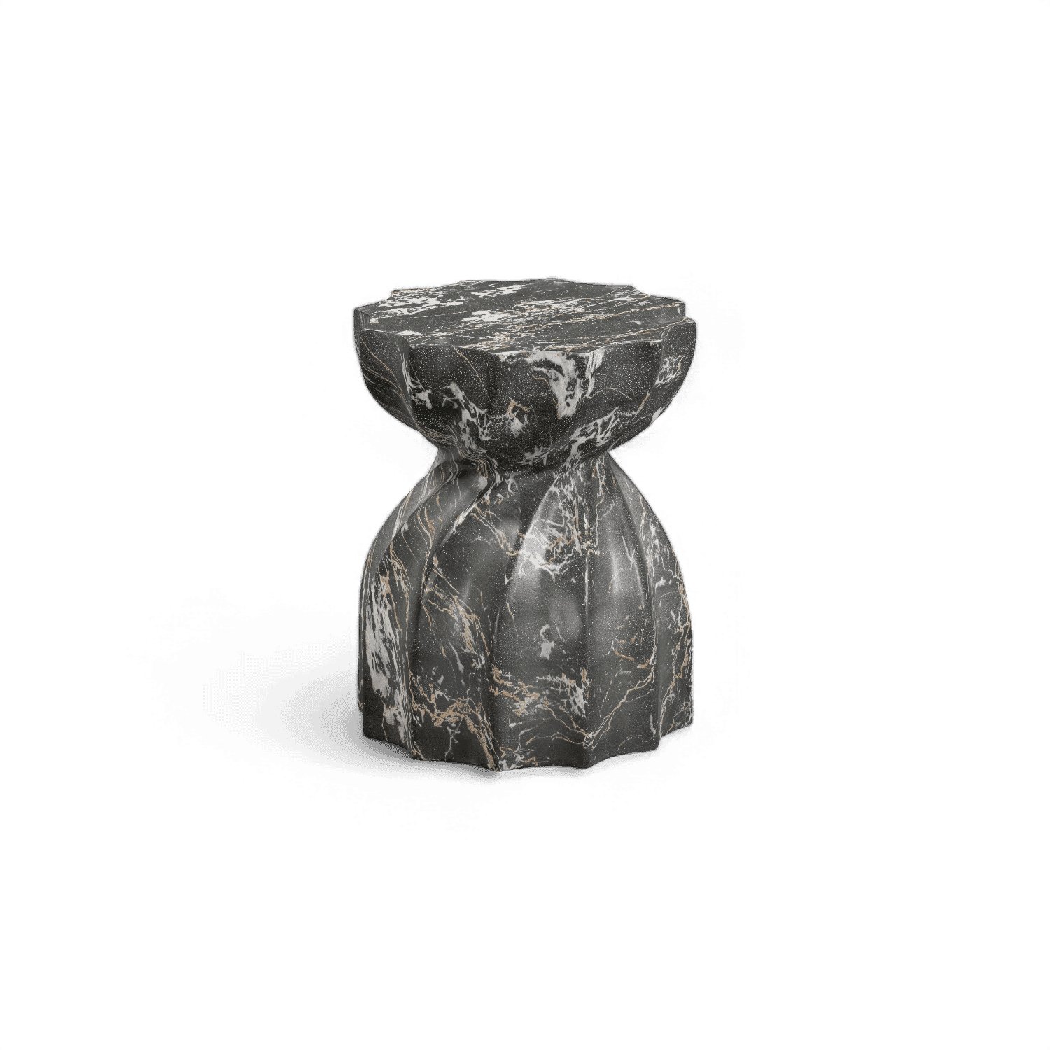 Le tabouret Brume présente un aspect imitation marbre et une résistance digne du béton. Il convient à une utilisation intérieure comme extérieure. Sa finition noire audacieuse apporte une touche industrielle chic à votre espace.