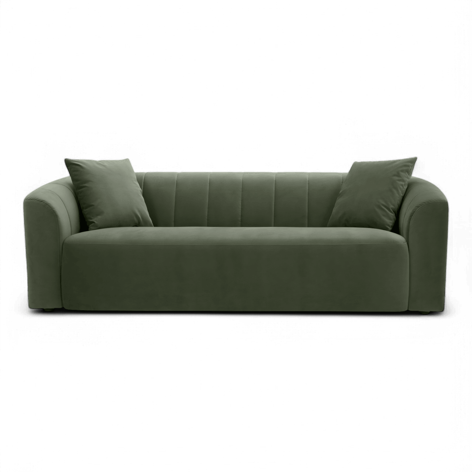 Sublimez votre salon avec le canapé 3 places Camden vert et découvrez l'alliance parfaite entre design moderne, angles arrondis et somptueux velours. Que vous vous détendiez avec un bon livre, receviez des amis ou vous détendiez simplement après une longue journée, le canapé Camden vous promet une détente incomparable.