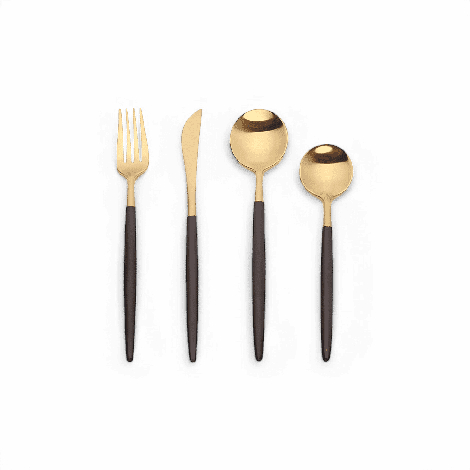 Sophistiqué et accrocheur, ce service minimaliste arbore un superbe contraste bicolore. Alliant acier inoxydable et chrome-nickel, il arbore un design fin et élégant, offrant une prise en main raffinée. Le service d'argenterie Cantina Noir et Or comprend une fourchette, une cuillère, une grande cuillère et une petite cuillère. Idéal pour les grandes occasions et les repas décontractés du quotidien, ce service apporte une touche chic à votre table.