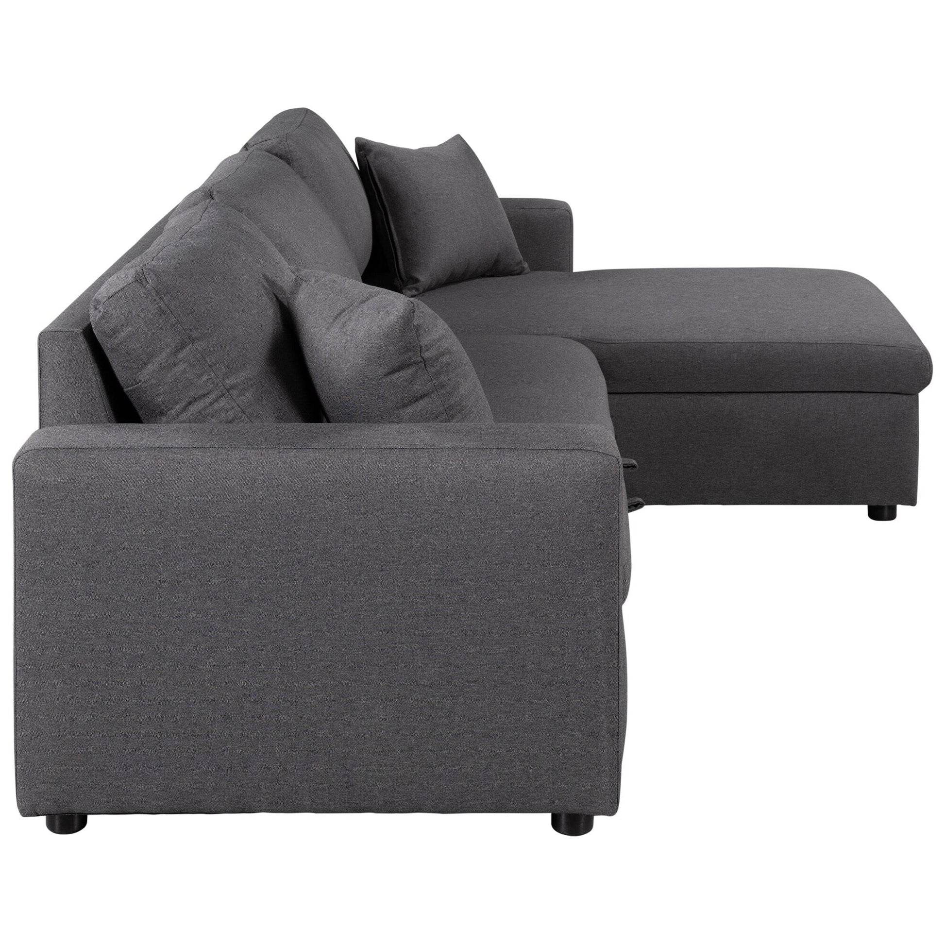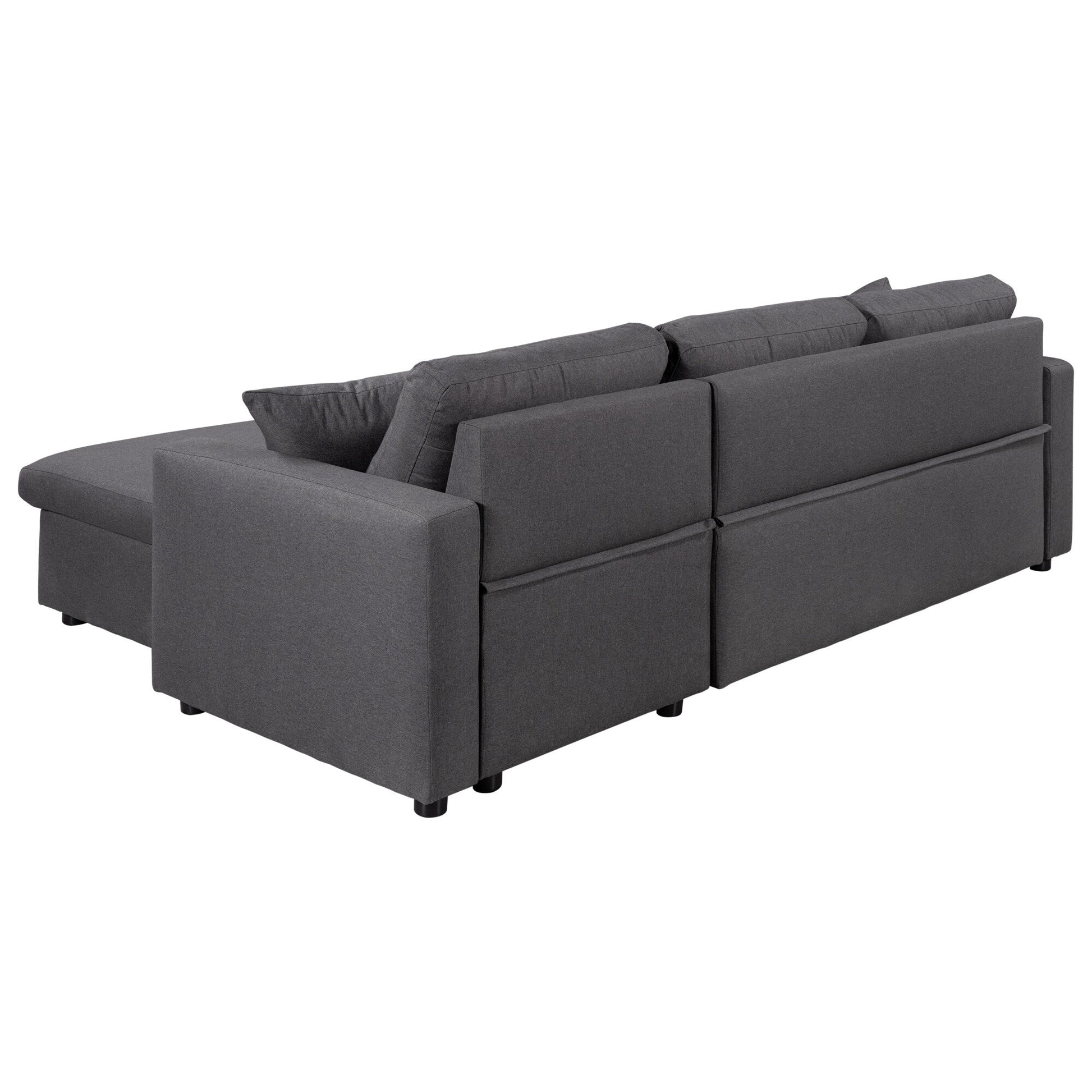 - Ce canapé-lit moderne en L se transforme facilement en lit grâce à une poignée coulissante, offrant ainsi un couchage supplémentaire sans occuper trop d'espace. Doté de rangements intégrés, de coussins en mousse haute densité et d'un tissu gris doux, il allie confort, fonctionnalité et style pour un usage quotidien.