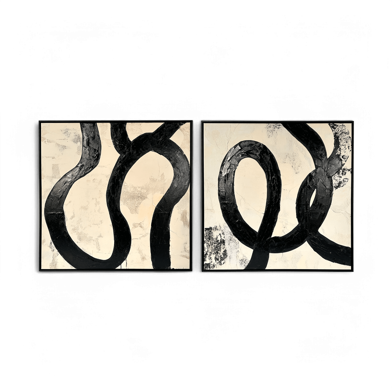 L'œuvre murale Fluid Elegance est un duo raffiné aux courbes fluides évoquant le mouvement, comme si elles capturaient le rythme naturel des vagues ou le doux balancement d'un tissu au vent. Ensemble, ces pièces apportent équilibre et sophistication discrète, ajoutant une touche d'élégance moderne à tout espace.