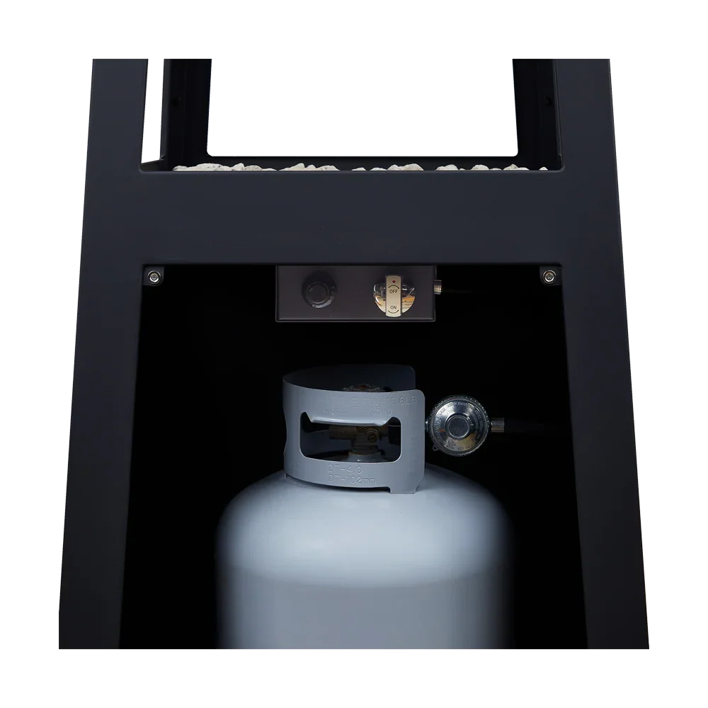 Ajoutez un point focal unique à votre espace extérieur avec le foyer Fuego. Doté d'un déflecteur de chaleur intégré sur mesure et d'une hauteur de 21,5 m, ce foyer est conçu pour une production de chaleur optimale. Délivrant une puissance de 50 000 BTU et fabriqué en acier robuste et durable, ce foyer d'extérieur moderne possède une base robuste, suffisamment grande pour dissimuler une bouteille de propane de 9 kg. Vous pouvez ainsi conserver une apparence épurée et élégante sans source de gaz ni tuyau exposés. Il est équipé d'un système d'allumage fiable par simple pression et rotation, et d'une hauteur de flamme réglable. Comprend un foyer avec pieds de mise à niveau, un brûleur en acier inoxydable, un remplissage en pierre ponce, une housse de rangement et un tuyau de propane avec régulateur. Les foyers à gaz Fuego Firepit sont certifiés CSA et résistent aux intempéries, au soleil et à la rouille.