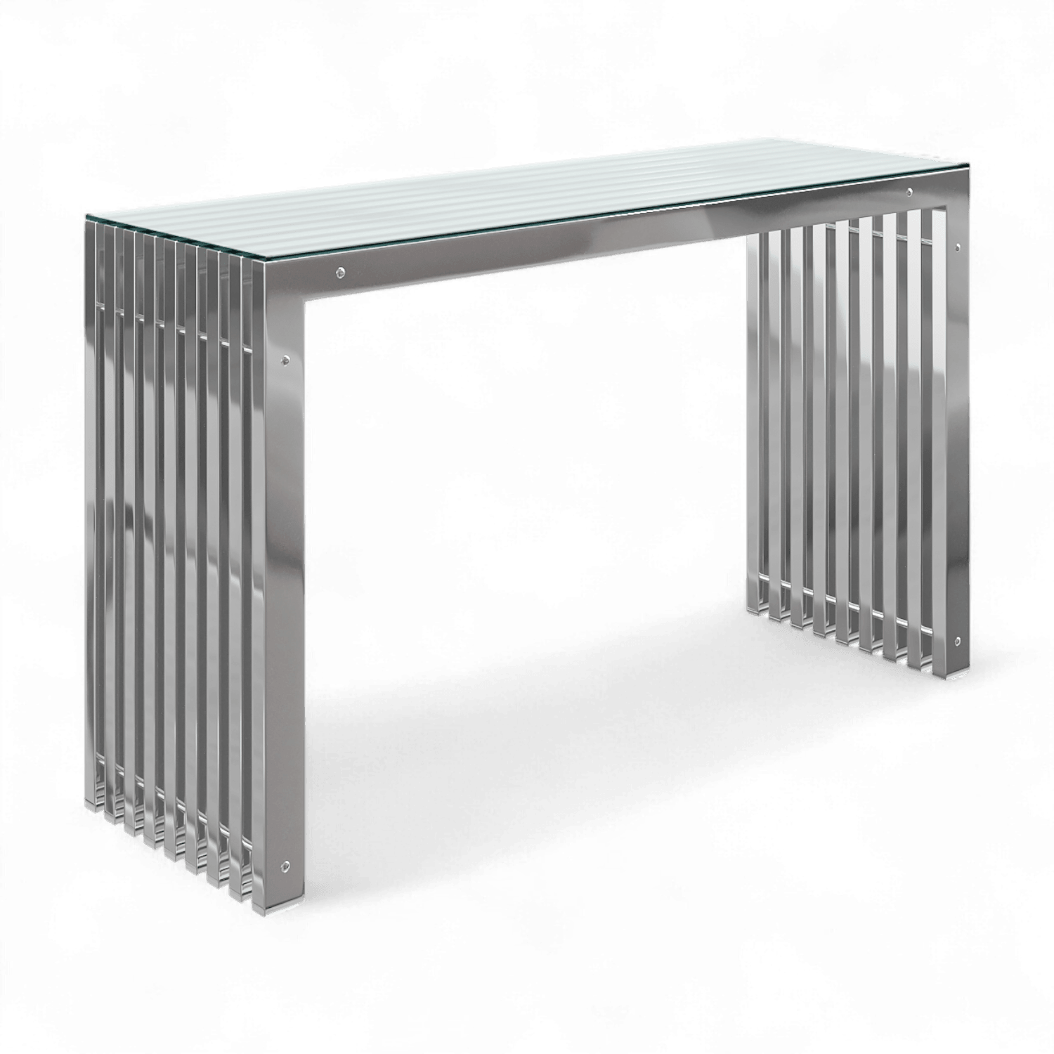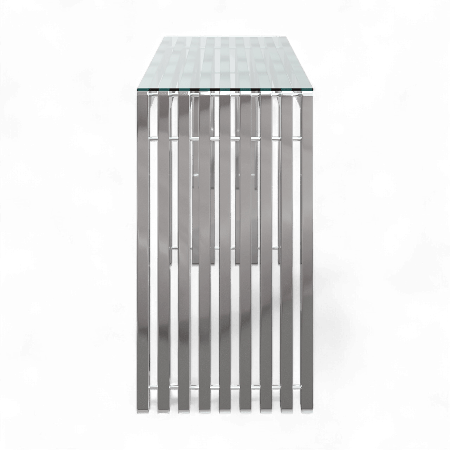 Complétez votre salon moderne et minimaliste avec la console Futoria. Fabriquée en acier inoxydable poli fusionné en rangées épurées, cette pièce apportera une touche élégante à tout décor chic. Chaque ligne de la table est parallèle à la suivante, créant une symétrie et un équilibre parfaits.