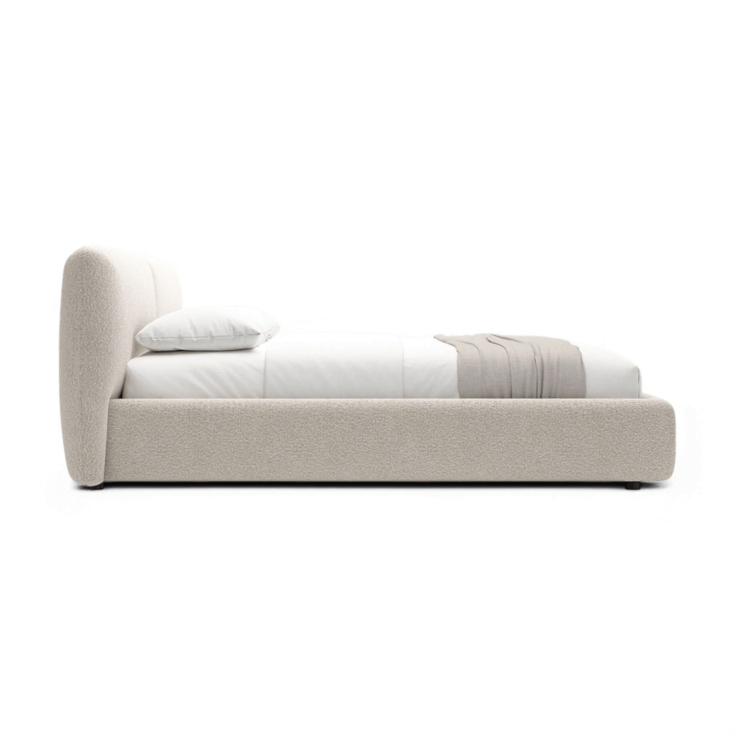 Sublimez votre chambre grâce à la beauté intemporelle et au confort incomparable du lit Gabriele en tissu bouclé blanc. La texture bouclée et la silhouette gracieuse du lit Gabriele transformeront votre chambre en un havre de luxe, tout en vous offrant un espace chaleureux où vous détendre pour lire, regarder la télévision ou simplement vous détendre au lit.