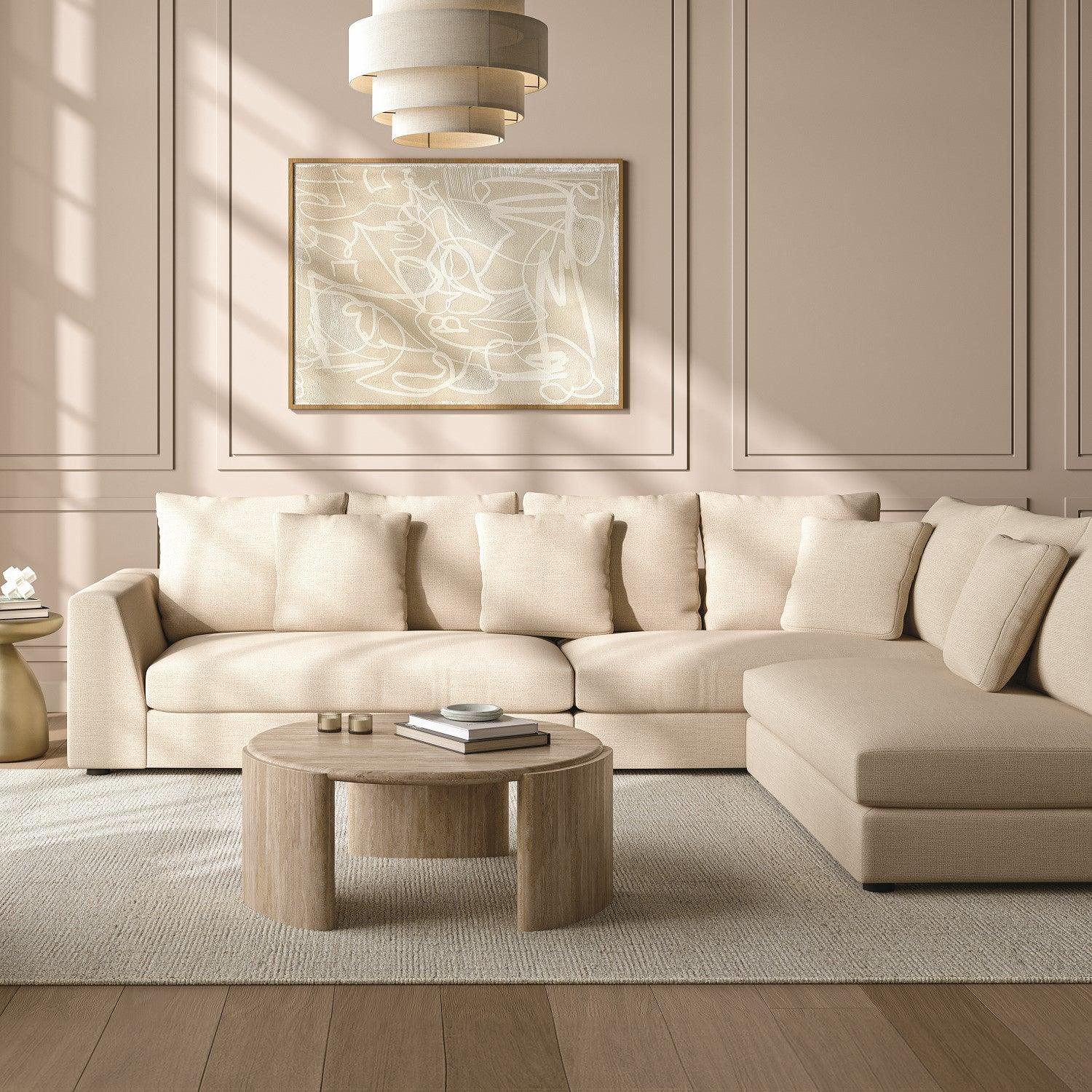 Le canapé d'angle Gianni Crème allie design contemporain et confort ultime, ce qui en fait la pièce maîtresse idéale de tout espace de vie. Revêtu d'un luxueux tissu crème, ce canapé d'angle en L invite à la détente grâce à sa texture douce et accueillante. Son accoudoir carré et son dossier aux lignes épurées lui confèrent une esthétique moderne et minimaliste, alliant harmonieusement style et fonctionnalité.