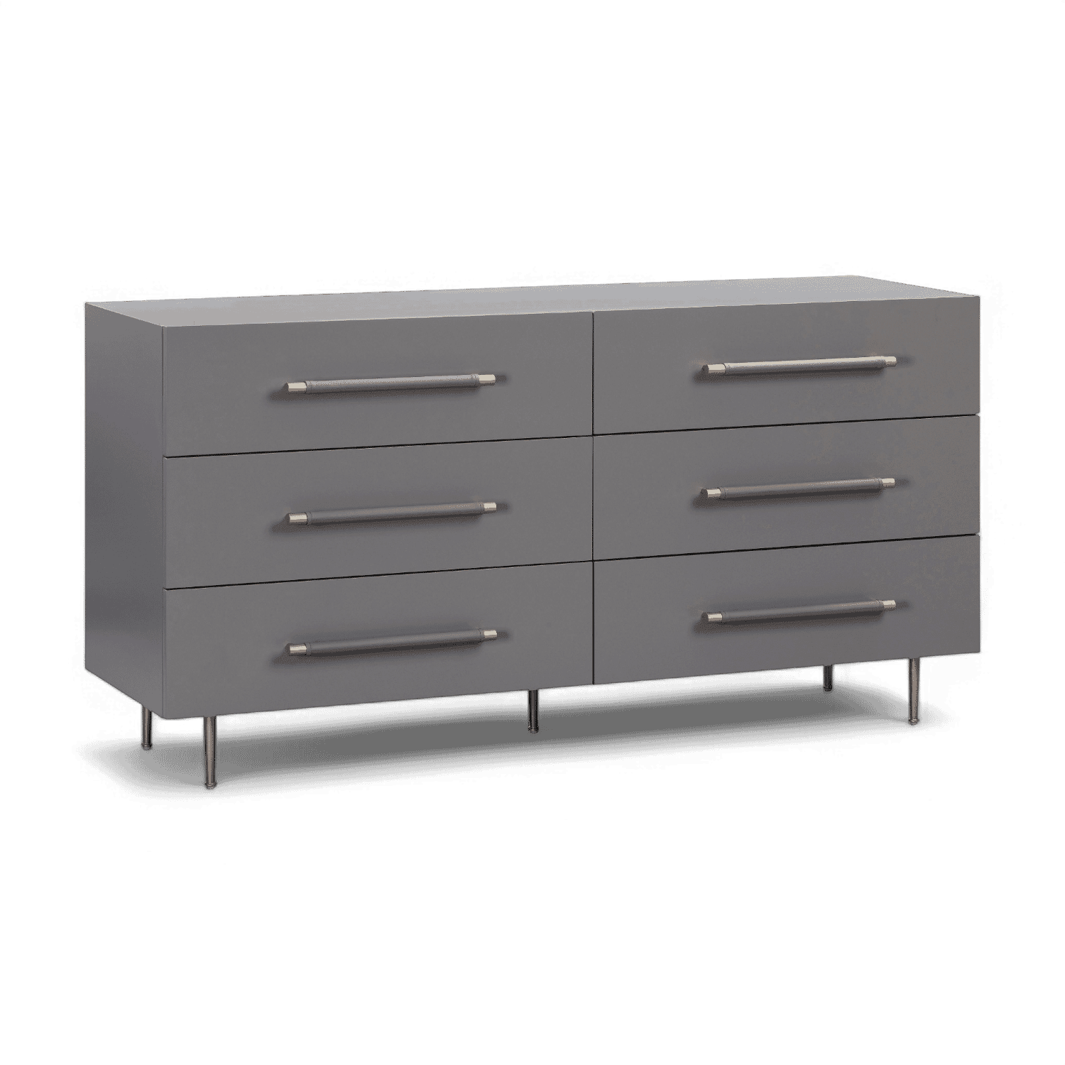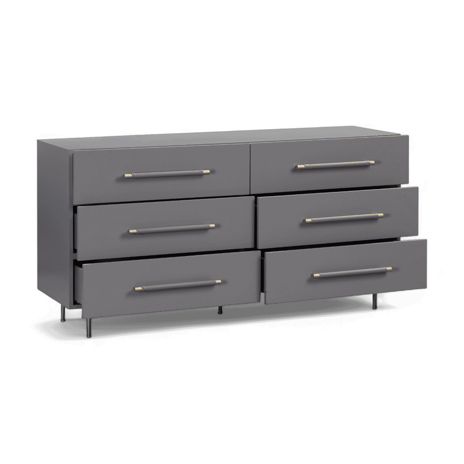 La commode 6 tiroirs Glade Grey apporte une touche de modernité à votre pièce grâce à son design épuré et sa finition grise polyvalente. Elle offre un grand espace de rangement tout en sublimant votre décoration.