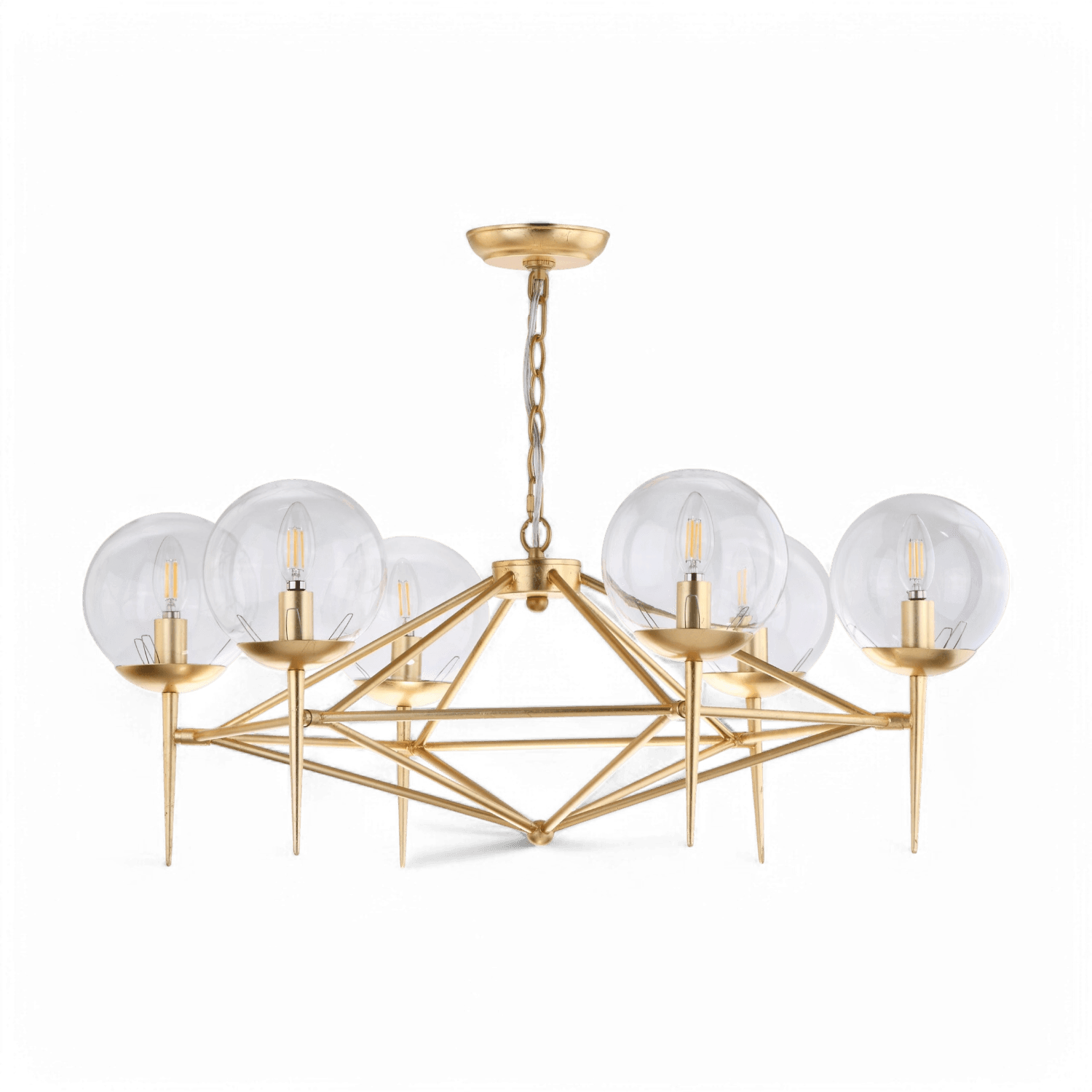 Illuminez votre espace avec le lustre Glow doré, une pièce maîtresse qui allie élégance moderne et sophistication intemporelle. Doté d'une structure géométrique audacieuse et d'une luxueuse teinte dorée, ce lustre est doté de six abat-jour sphériques en verre rayonnants qui abritent des ampoules à filament, diffusant une lumière chaleureuse et ambiante. Idéal pour les salles à manger, les salons ou les entrées majestueuses, le lustre Glow doré apporte une touche de glamour et d'élégance architecturale à tout décor, devenant ainsi la pièce maîtresse de chaque pièce.