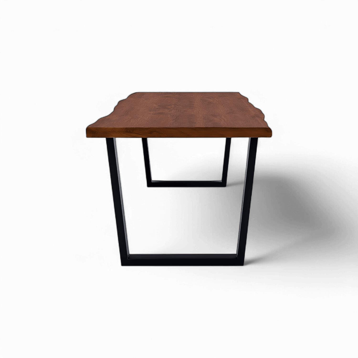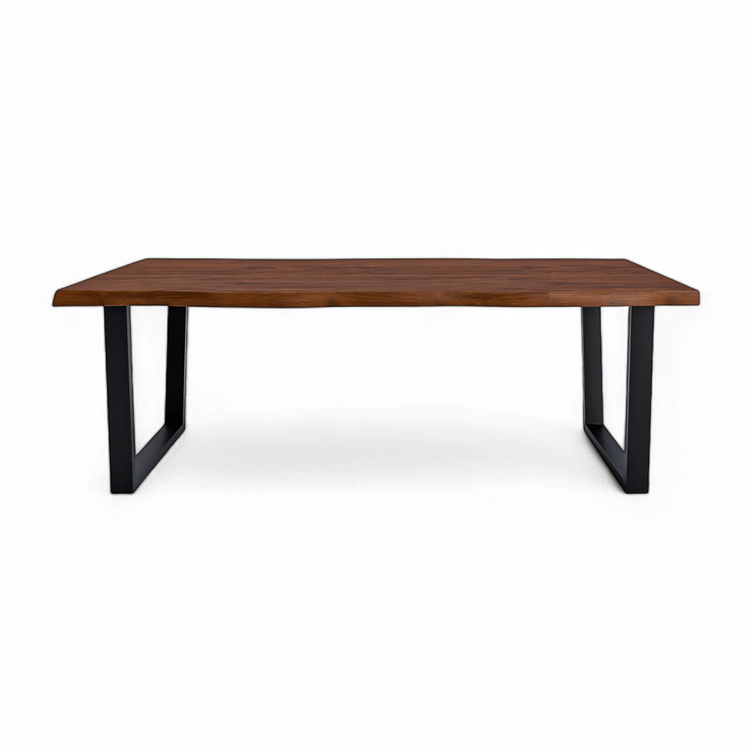 Plateau en acacia massif | Pieds en acier doux thermolaqué noir mat | Capacité : 6 à 8 personnes