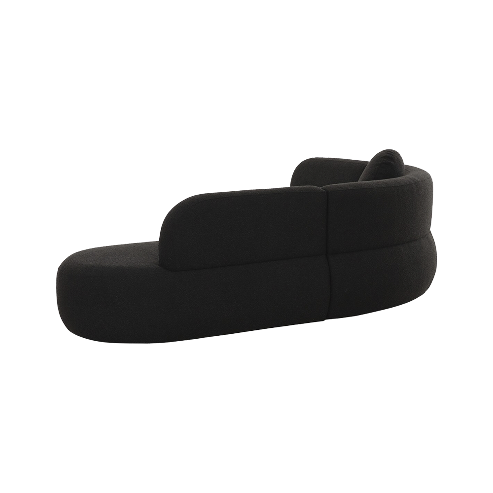 Le canapé sectionnel Horizon en tissu bouclé noir respire la sophistication moderne avec son design élégant et incurvé. Mesurant 30,5 m de long de chaque côté, ce canapé sectionnel spacieux offre une assise généreuse et un tissu bouclé texturé et confortable. Ses coussins moelleux et sa forme ergonomique allient style et confort, ce qui en fait un ajout remarquable à tout espace de vie contemporain.
