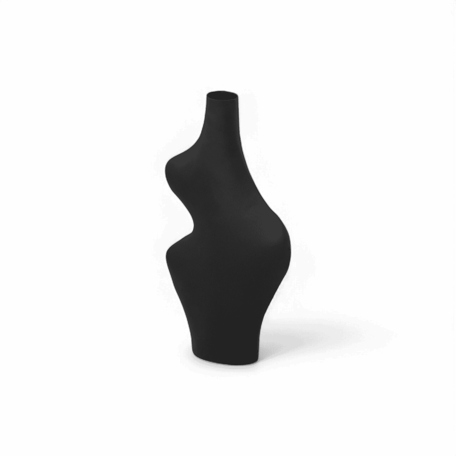Le vase Karma en acier noir incarne un minimalisme moderne et audacieux. Son design industriel robuste s'intègre parfaitement à une variété de compositions décoratives et apporte une touche d'élégance à n'importe quelle pièce.