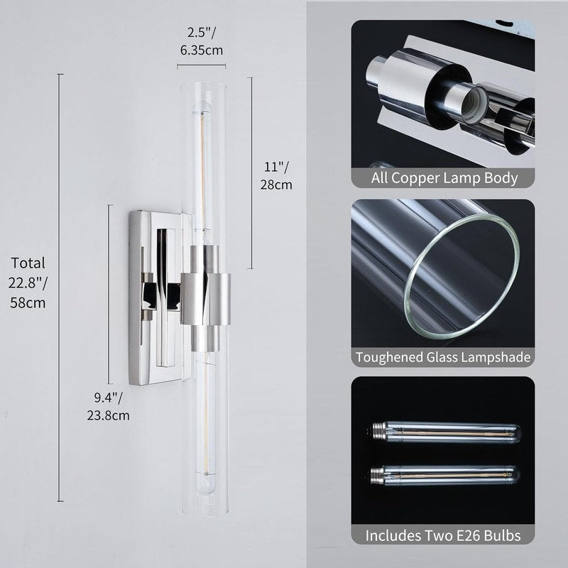 Appliques murales modernes : Inspirée des appliques murales de grange, cette applique murale moderne en tube de verre est dotée d'un abat-jour cylindrique en verre transparent et d'un revêtement en nickel pour une élégance moderne et élégante. Son style simple et élégant apporte une touche industrielle au luxe contemporain.