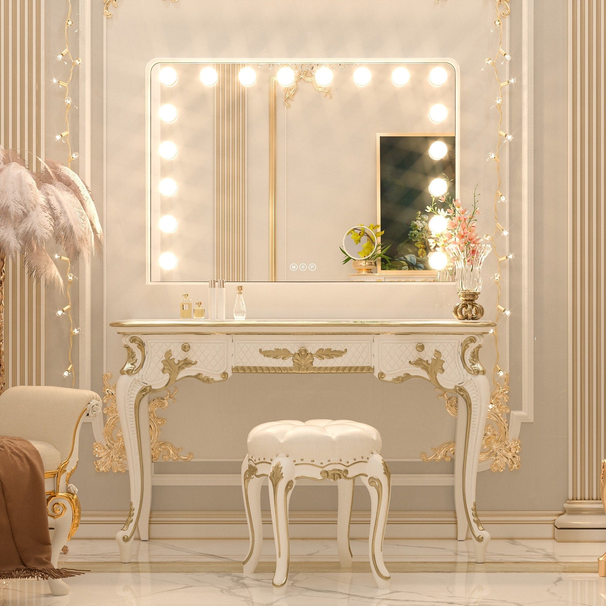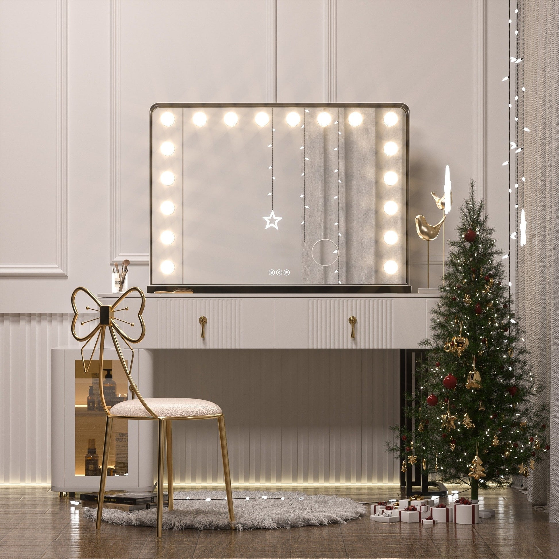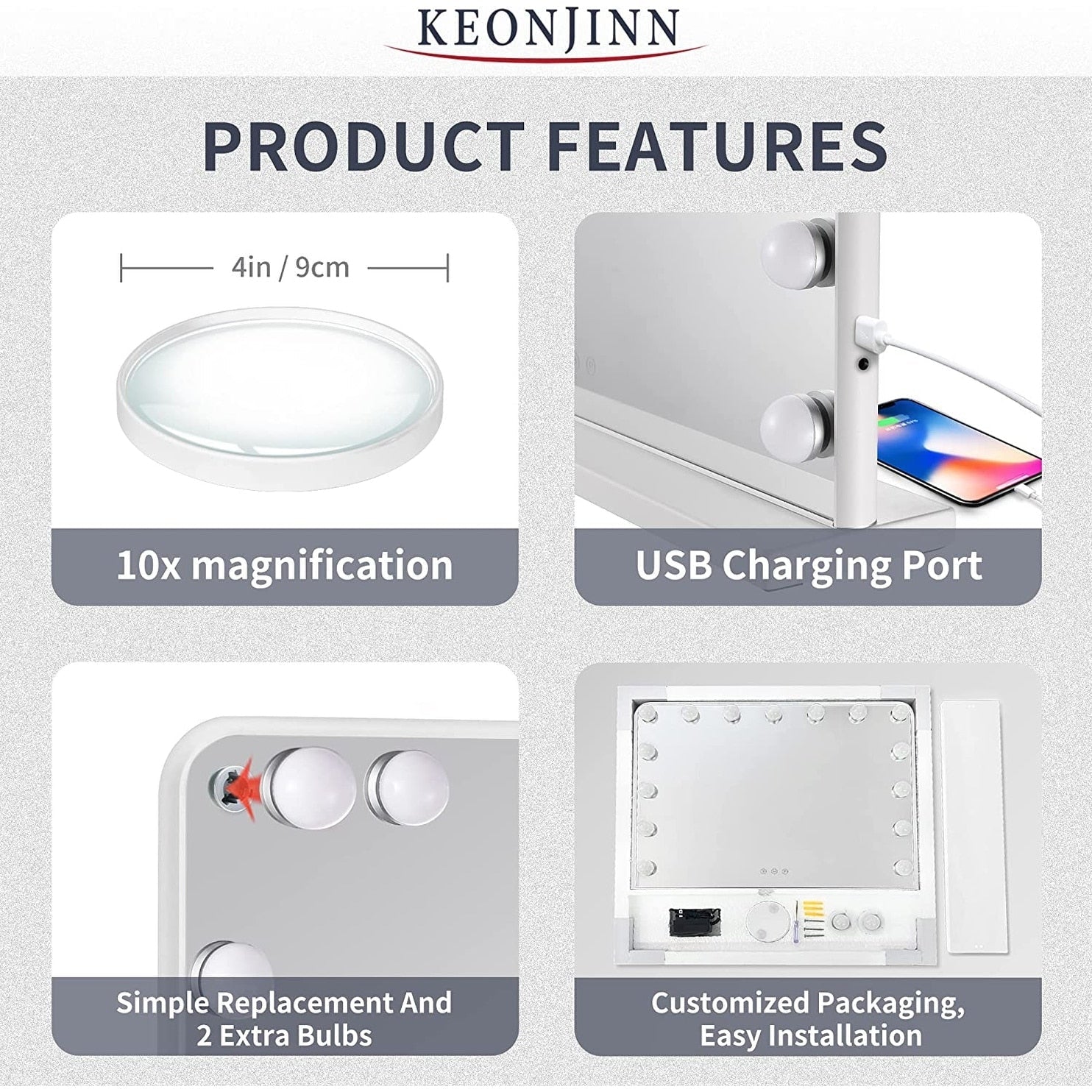Offrez une expérience ultime à votre maquillage ou soin de la peau grâce au miroir de maquillage éclairé Hollywood LED de Keonjinn, à poser ou à fixer au mur. Profitez d'un éclairage professionnel grâce à ses 15/18 ampoules LED pour ne manquer aucun détail et ne plus jamais rater votre maquillage. Idéal pour le maquillage, les retouches, les soins de la peau et autres activités qui vous mettent en valeur, il est idéal pour sublimer votre beauté.