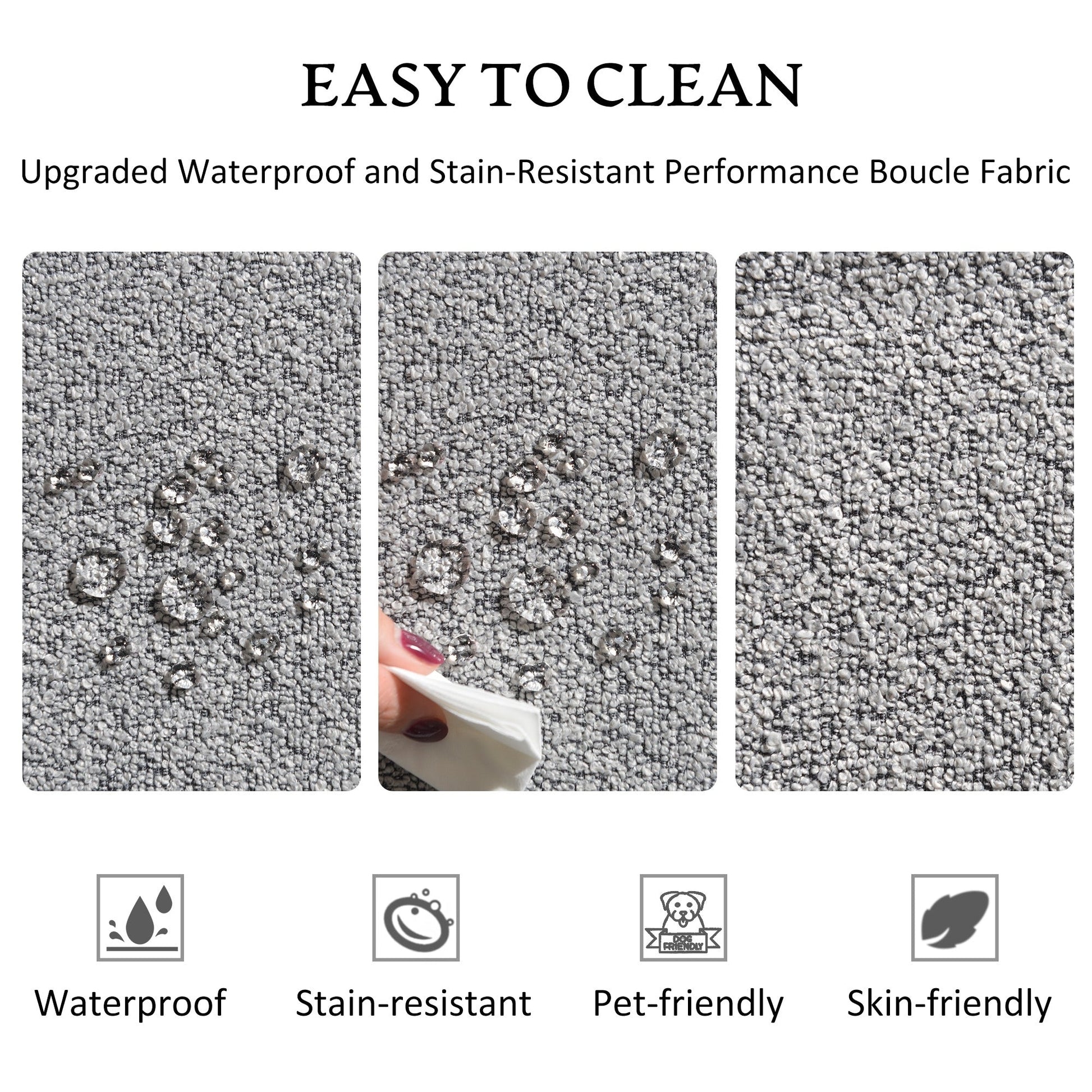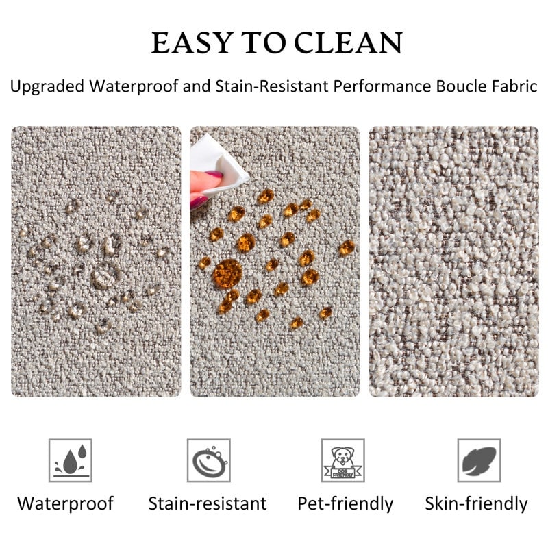 Ce canapé causeuse est un meuble magnifique inspiré du design moderne du Moyen Âge. Il est fourni avec quatre coussins, deux coussins carrés et deux coussins sphériques, offrant un confort et un soutien exceptionnels pour le dos et la nuque. Grâce à ses dimensions compactes, ce canapé bouclé est idéal pour les petits espaces et peut accueillir confortablement jusqu'à deux personnes. Sa structure robuste et naturelle est recouverte d'un rembourrage en mousse et d'un tissu bouclé résistant, garantissant confort et durabilité.