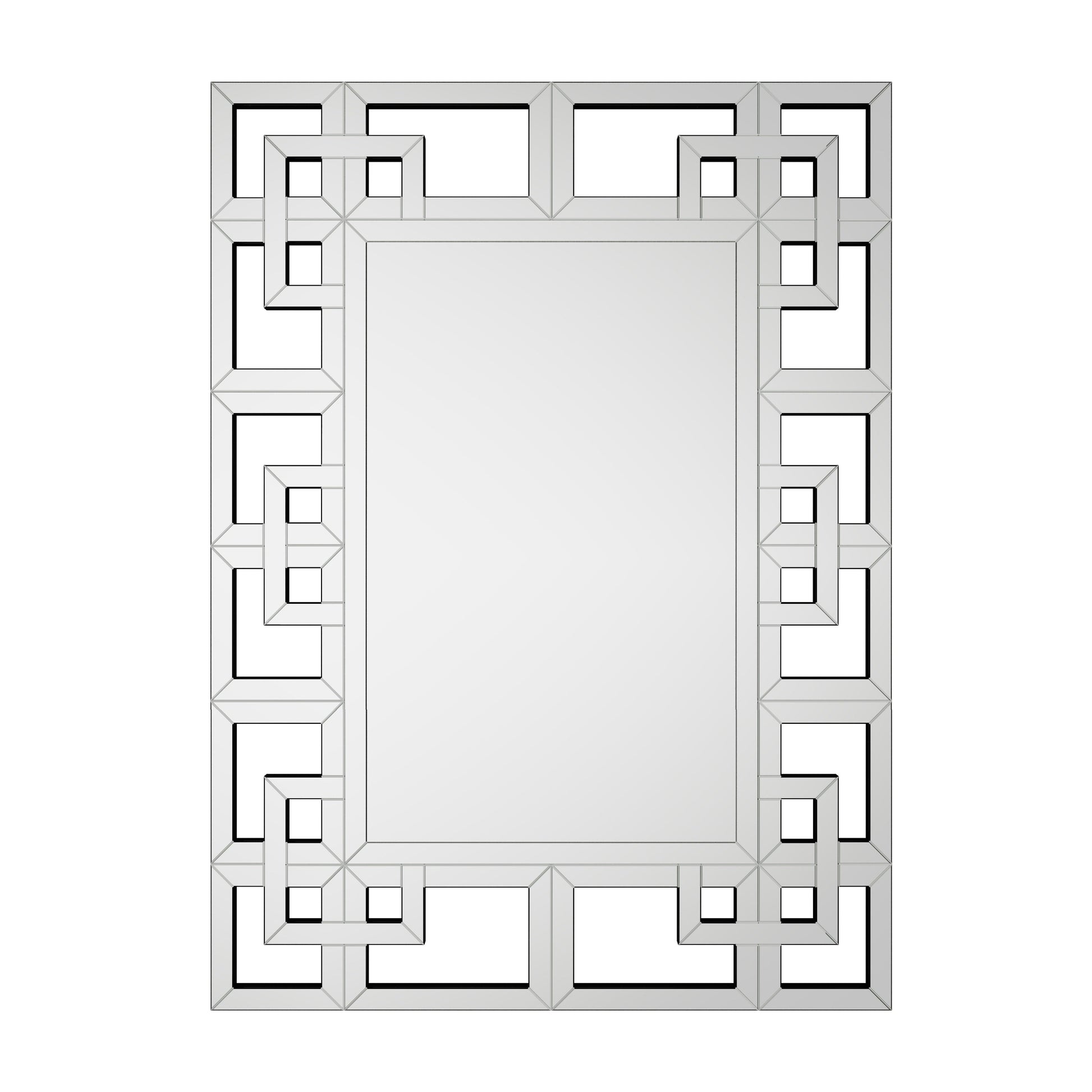 Décorez n'importe quel mur imposant avec ce miroir contemporain éblouissant et attirez tous les regards. Avec ses détails géométriques ajourés et ses finitions argentées lisses, il apporte une touche d'élégance à votre intérieur. Ce grand miroir mural apportera une touche d'élégance à votre intérieur. Ce miroir de salon éblouira vos invités et apportera une touche personnelle à votre espace de vie. Parfait pour une esthétique contemporaine et glamour, il présente un miroir rectangulaire encadré d'une bordure en treillis, réalisée à partir de segments de miroir biseautés à la main. Il sera du plus bel effet au-dessus de votre meuble-lavabo de salle de bain principale ou de votre console d'entrée. Il peut être suspendu horizontalement ou verticalement.