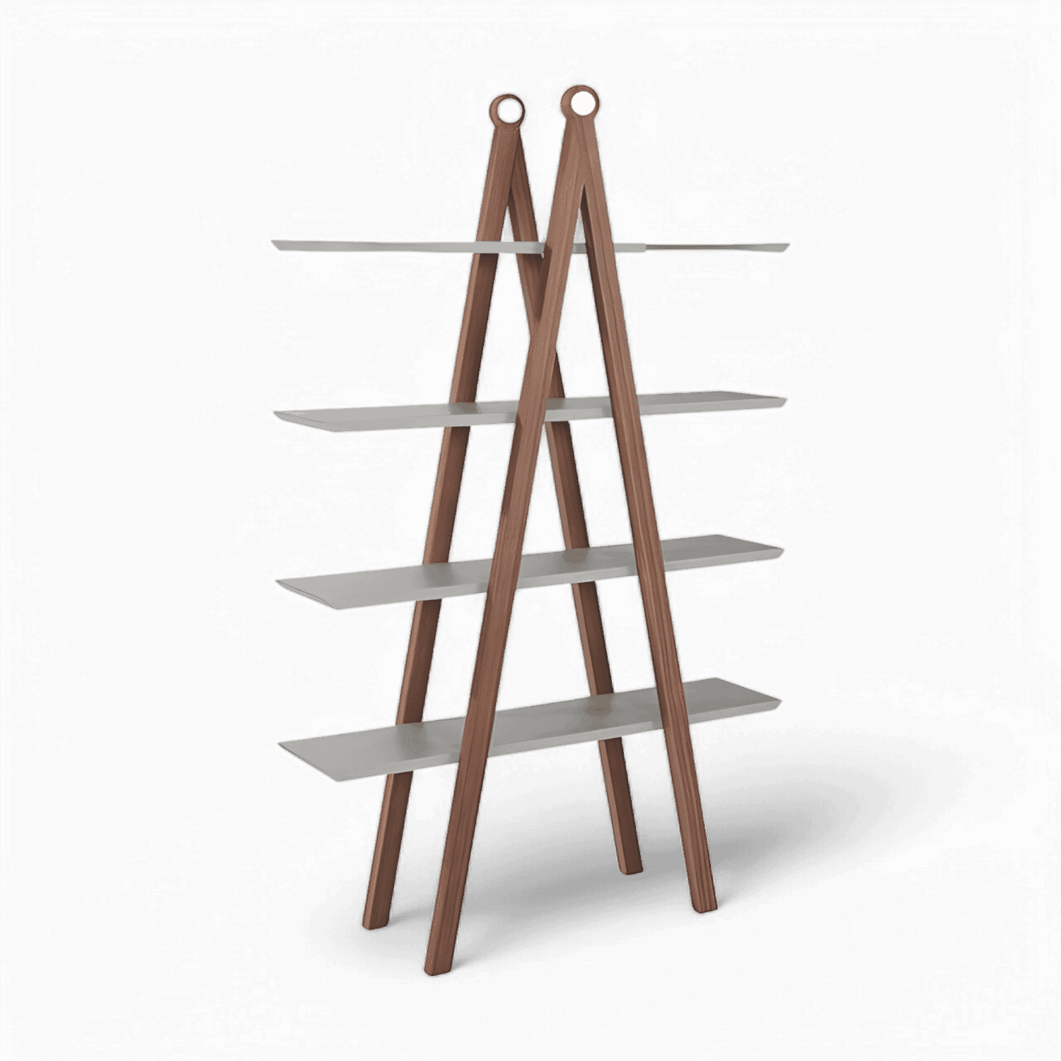 Avec son design en forme de A ascendant, l'étagère Logan Noyer et Gris accueillera tous vos livres et objets de collection. Ses quatre panneaux gris mat contrastent avec un cadre en noyer pour un style épuré et audacieux. Rangez vos bibelots, souvenirs, livres et magazines sur les étagères. Élégante et équilibrée, cette étagère est le gain de place idéal.