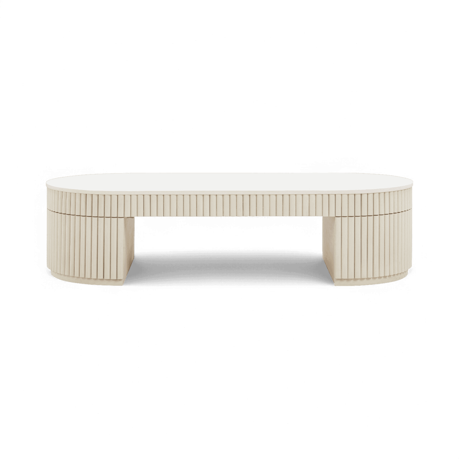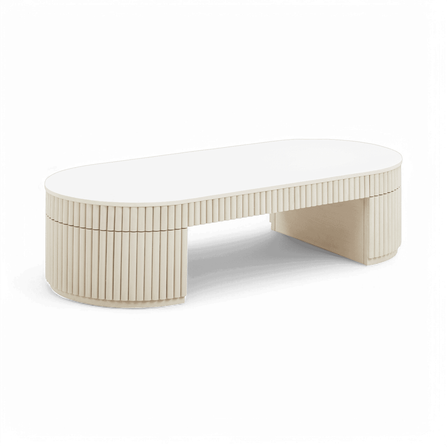 Gracieuse et contemporaine, la table basse ovale Loom Crème constitue un point focal élégant pour votre salon. Sa forme ovale et lisse et sa finition neutre s'intègrent parfaitement à divers styles de décoration.