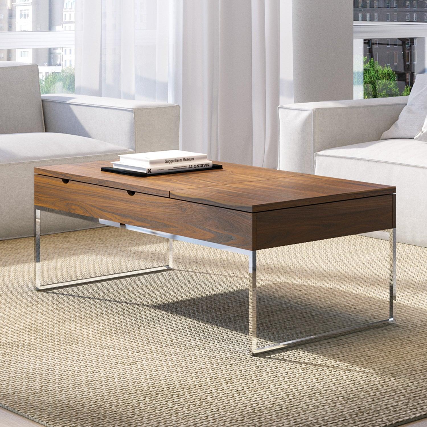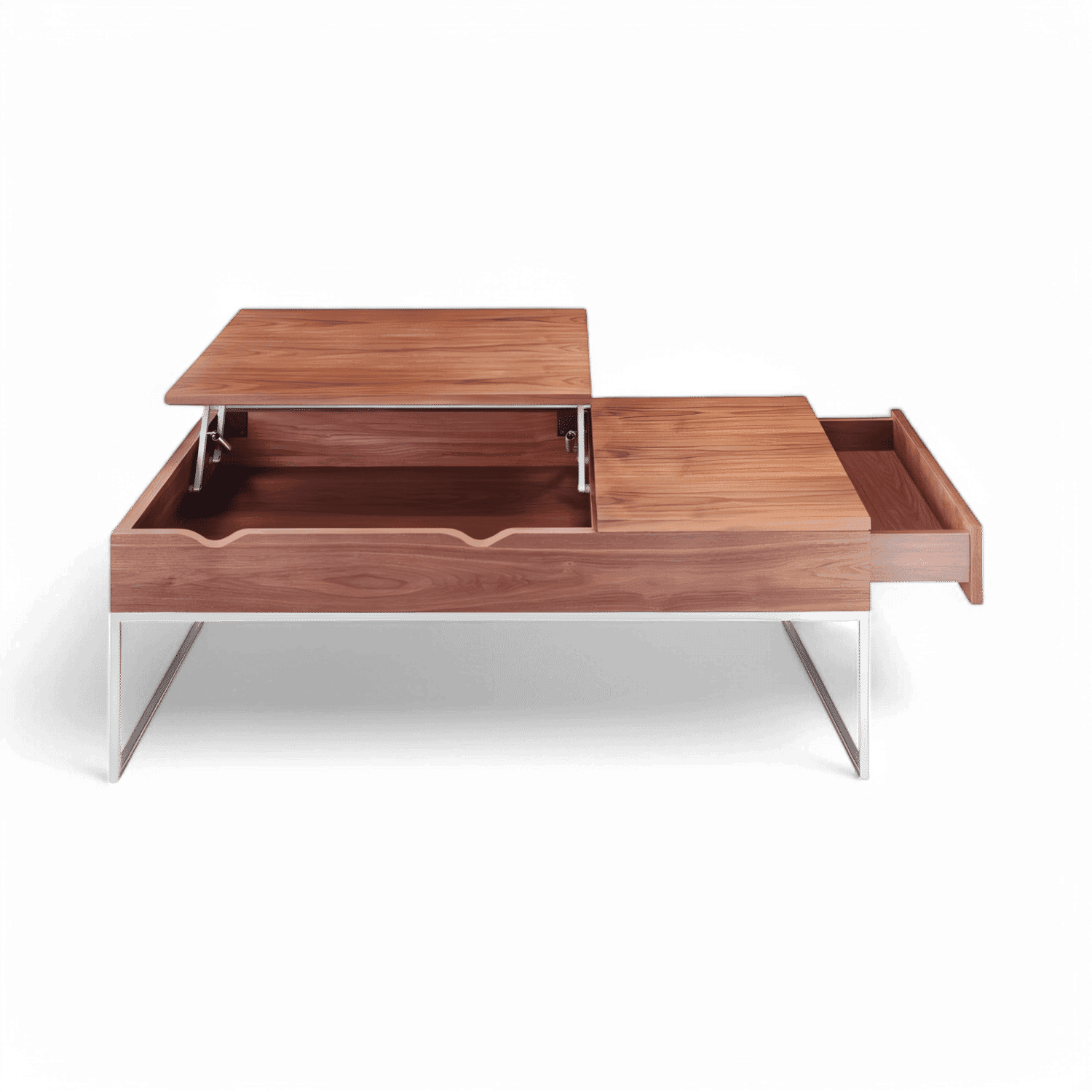 Avec un profil rectangulaire, la table basse contemporaine Lubeck en noyer combine un design simple et moderne avec une sophistication classique. Décorer un petit espace ne signifie pas nécessairement sacrifier le style. Cette table moderne offre un espace de rangement fonctionnel pour le salon dans un style moderne attrayant. Avec un tiroir coulissant et un autre mécanisme de levage entièrement fonctionnel, ranger des objets n'a jamais été aussi simple. Des lignes épurées et minimalistes et une finition en bois de noyer composent cette superbe table. Élégant, zen et simple, ce meuble ne manquera pas d'attirer l'attention.