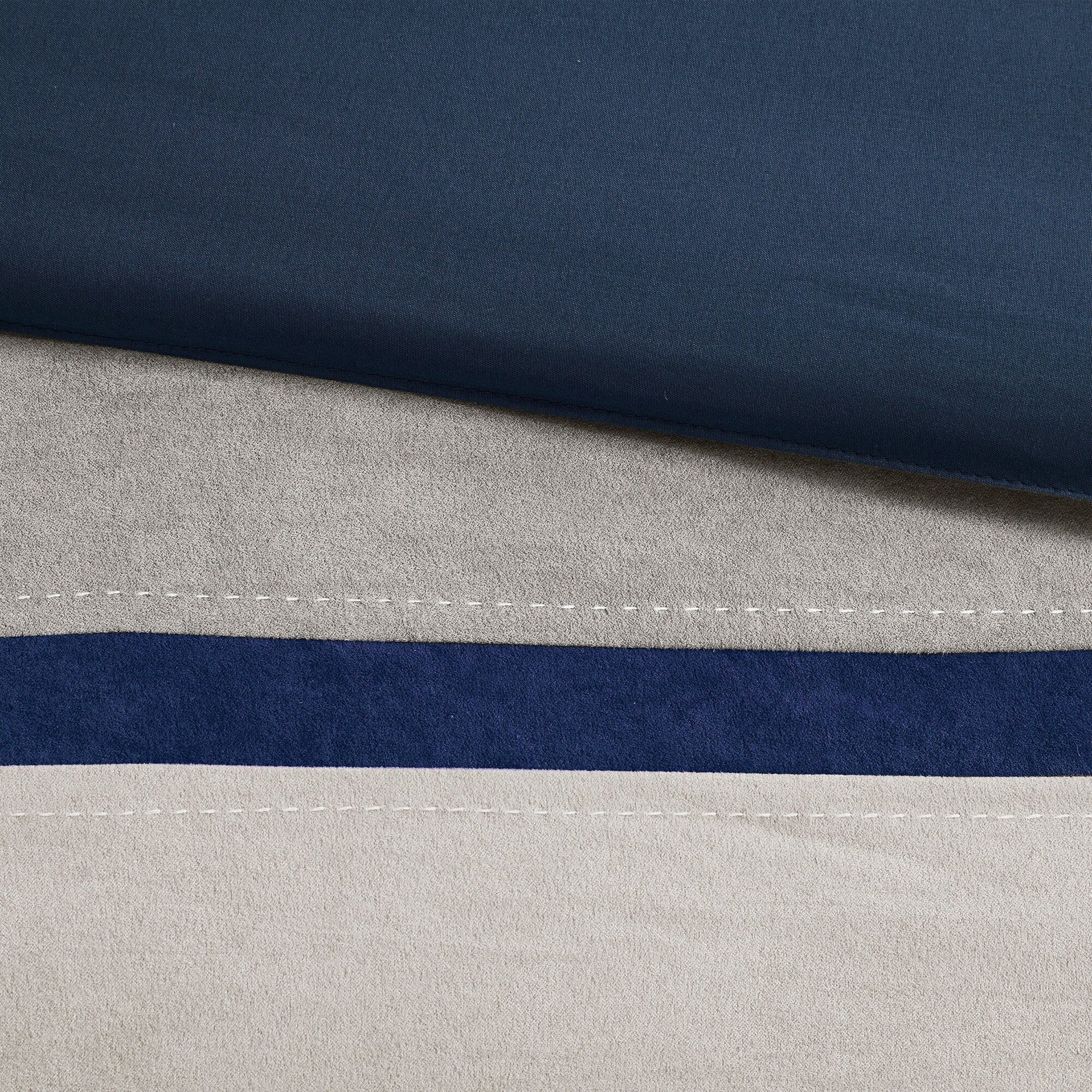 L'ensemble de couette Hanover 7 pièces de Madison Park vous offre une alternative décontractée à la parure de lit tendance. Le revers de la couette est bleu uni. Le doux microsuède gris chiné, bleu et gris anthracite est assemblé pour créer ce magnifique lit. Les coussins décoratifs sont brodés et assemblés pour ajouter une touche décorative à cette collection de literie simple et élégante. Avec son garnissage hypoallergénique, cet élégant ensemble de couette rafraîchit facilement votre chambre et est lavable en machine pour un entretien facile.