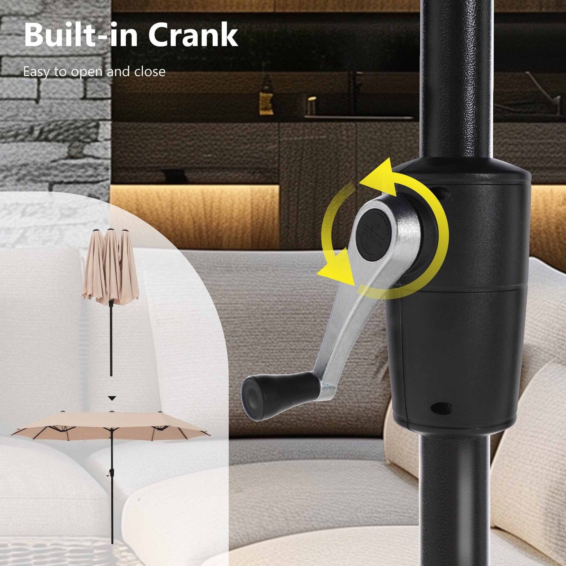 - Parasol double face de 13 pieds avec toile en polyester 180 g et mât en aluminium de 1,5 pied