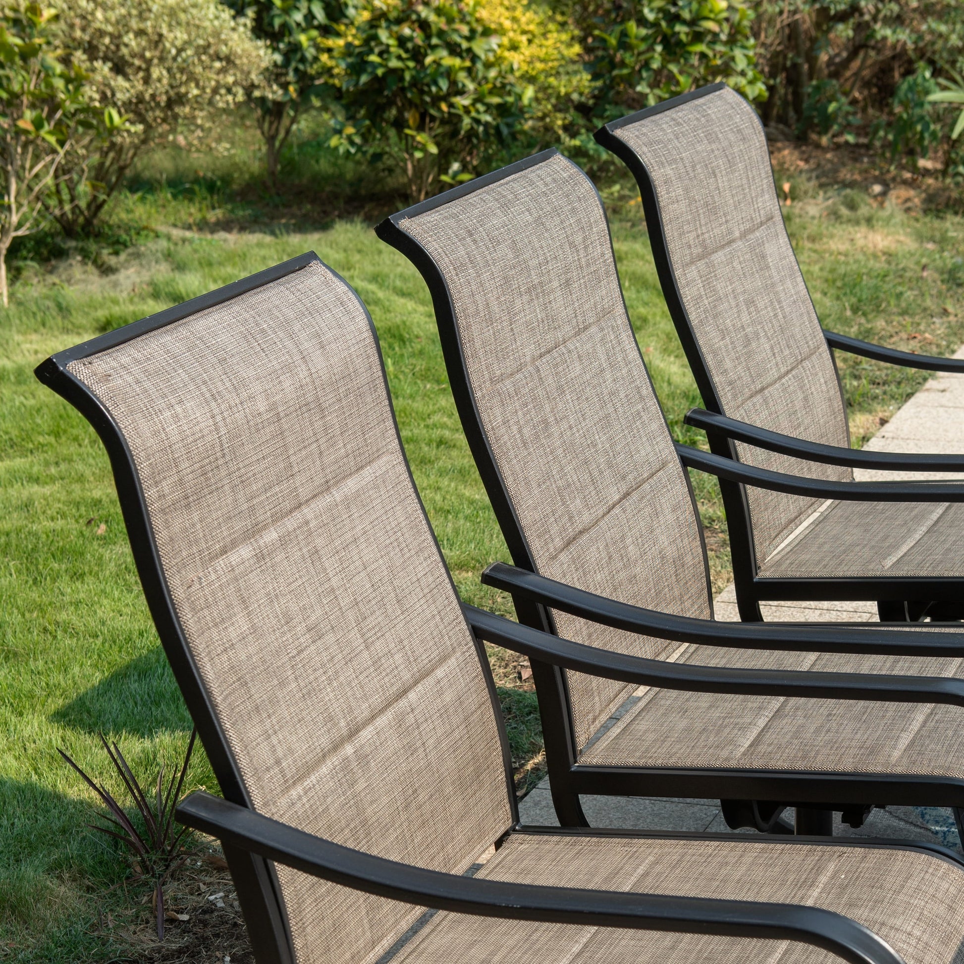 - 6 fauteuils pivotants avec tissu en maille Textilène et un design ergonomique légèrement basculant pour plus de confort