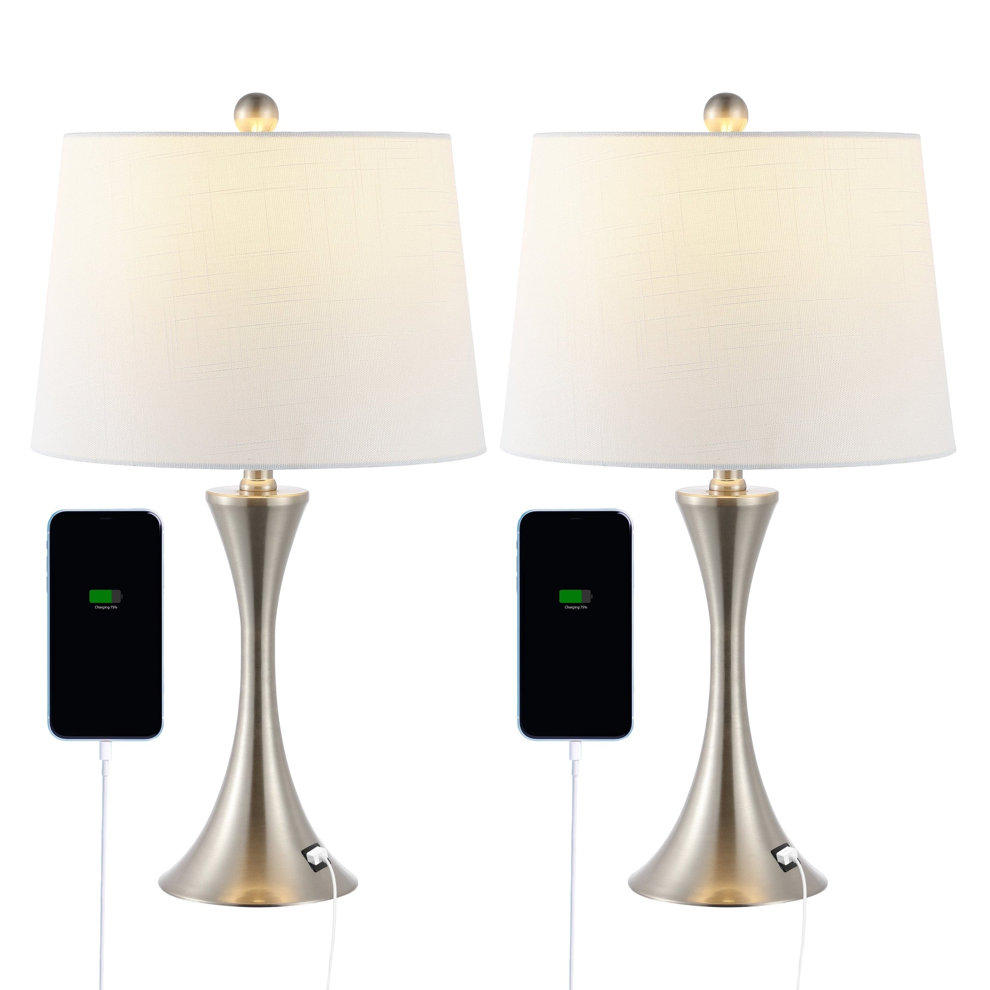 Lampe de table LED Makena 22,75 cm en fer moderne et glamour avec port de chargement USB (lot de 2) par JONATHAN Y
