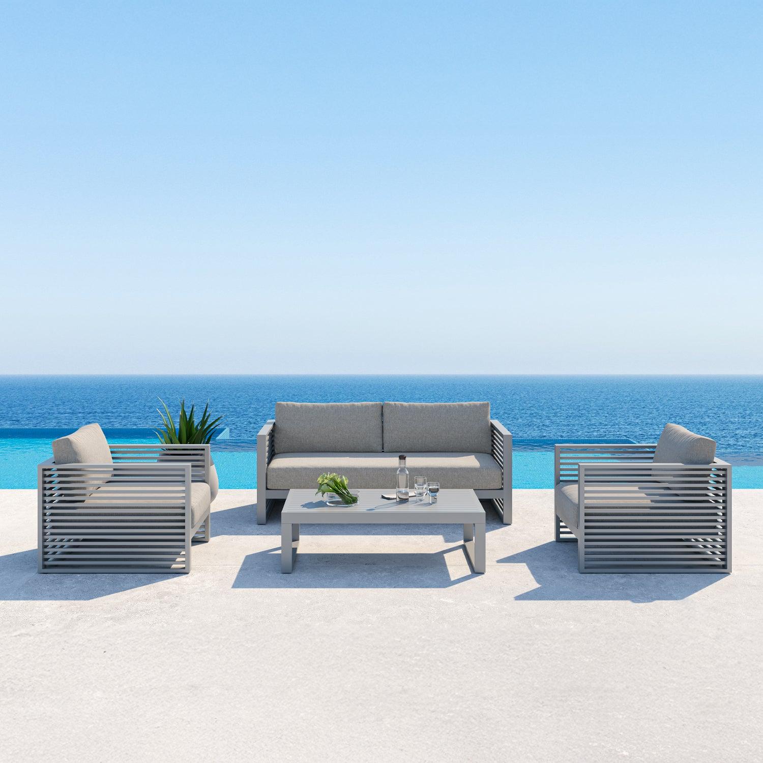 Créez un espace de vie extérieur chic avec l' ensemble de canapés d'extérieur Mallorca , composé d'un canapé 3 places moderne, de deux fauteuils assortis et d'une élégante table basse. Avec ses tissus performants, ses lignes épurées et ses matériaux robustes, cet ensemble allie élégance et durabilité : idéal pour se détendre, recevoir ou profiter des après-midis ensoleillés.
