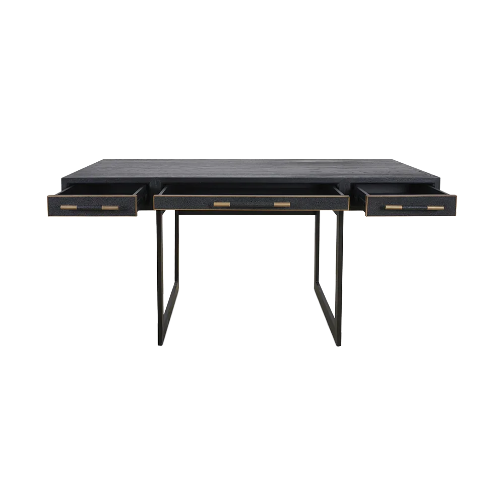 Le bureau Midnight est une solution de travail élégante et moderne, avec sa finition noire intense et ses poignées de tiroirs aux accents dorés. Ce bureau élégant offre trois tiroirs spacieux, parfaits pour organiser vos essentiels de bureau. Son design minimaliste et son piètement ouvert apportent une touche contemporaine à votre domicile ou à votre bureau professionnel.