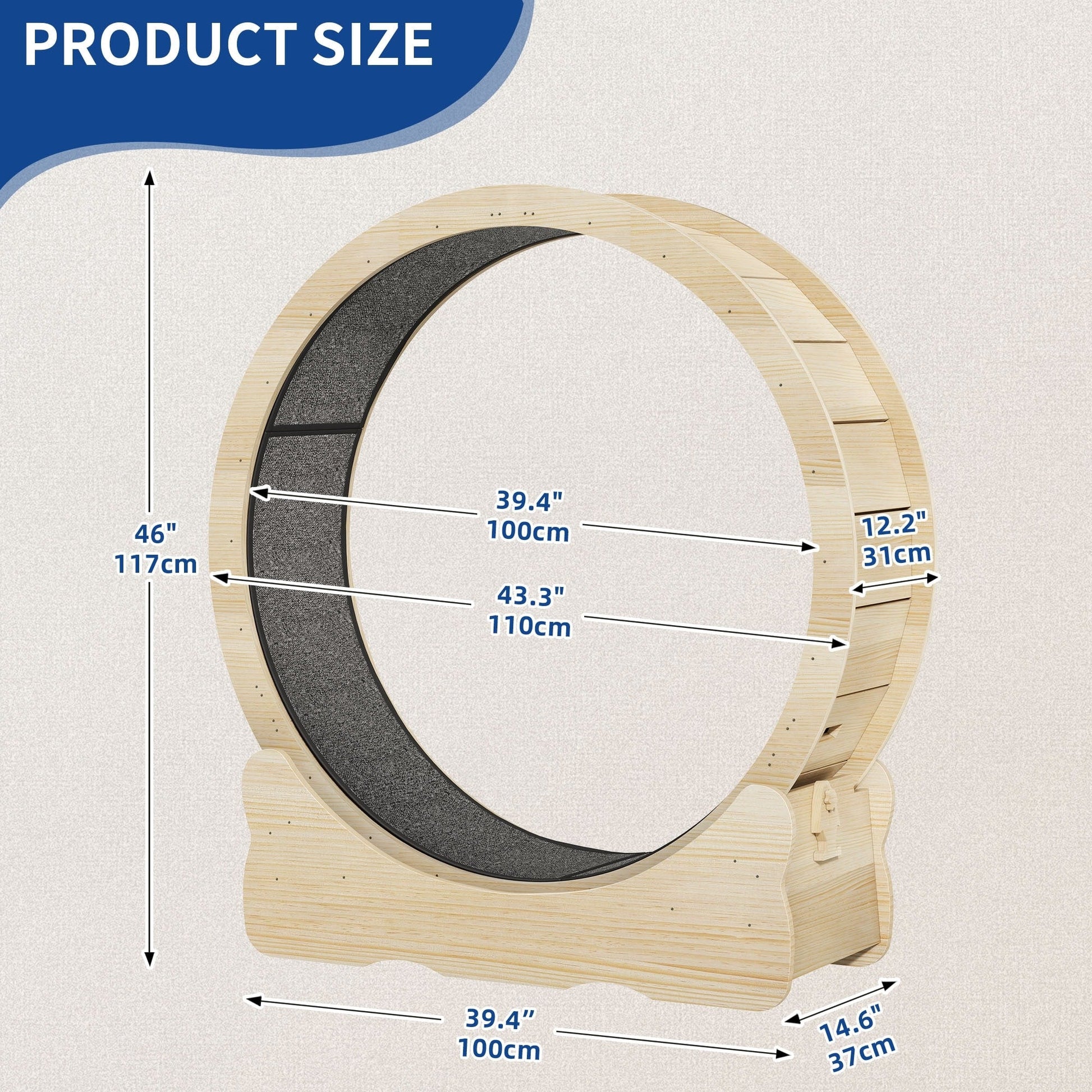 Moasis 43,3 pouces Grand tapis de course en bois pour chat avec roue d'exercice et piste recouverte de moquette