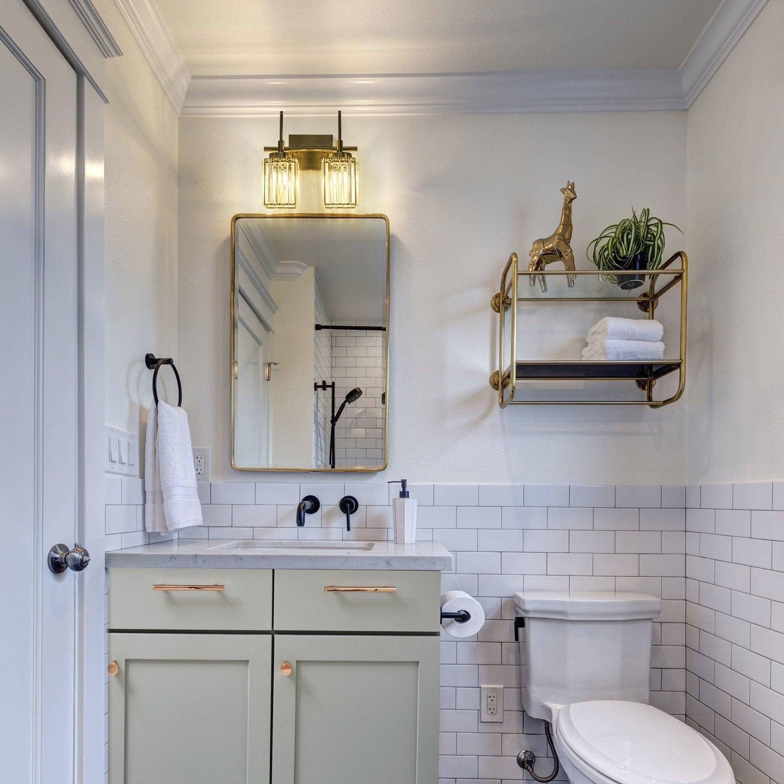 Sublimez l'élégance et le raffinement de votre salle de bain avec notre luminaire de salle de bain en cristal glamour. Ce luminaire en laiton brossé est doté d'une structure en métal robuste et d'un abat-jour en cristal taillé avec précision, garantissant durabilité et élégance intemporelle. Il rehaussera l'opulence et le raffinement de votre pièce. Des abat-jour en cristal de qualité supérieure sont suspendus à une tige métallique linéaire dorée, complétant ainsi son élégance. Chaque abat-jour cylindrique en cristal dissimule un charmant spectre de couleurs arc-en-ciel, captivant le regard même à la lumière naturelle et créant un point focal captivant pour votre miroir de salle de bain ou de dressing.