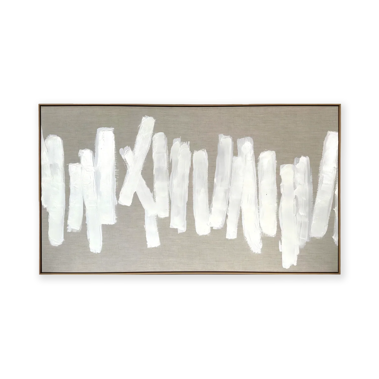 Cascade Neutre est une toile horizontale captivante alliant élégance et texture dynamique. L'interaction entre le calme du fond grège et la vivacité des veines blanches crée une œuvre visuellement captivante qui apporte texture et sérénité à tout décor.