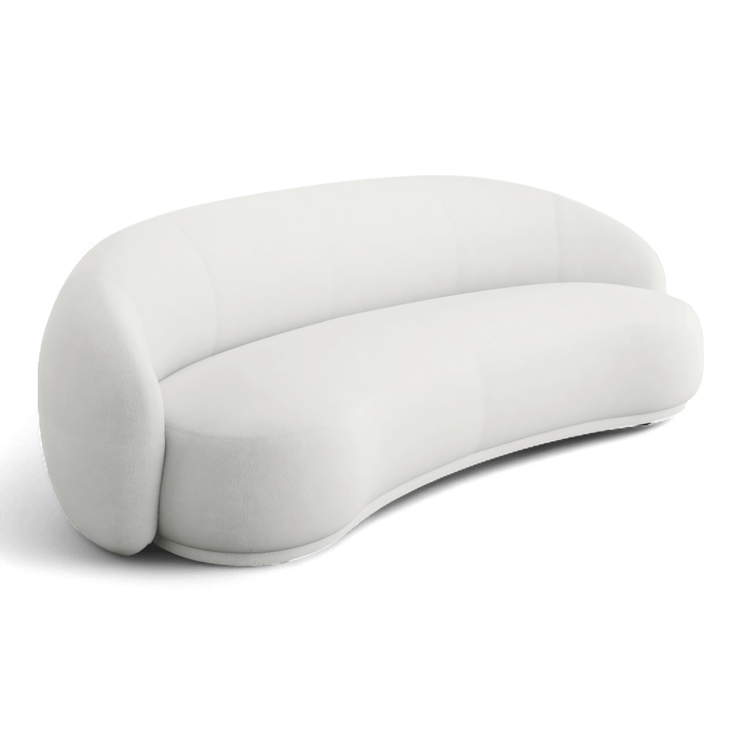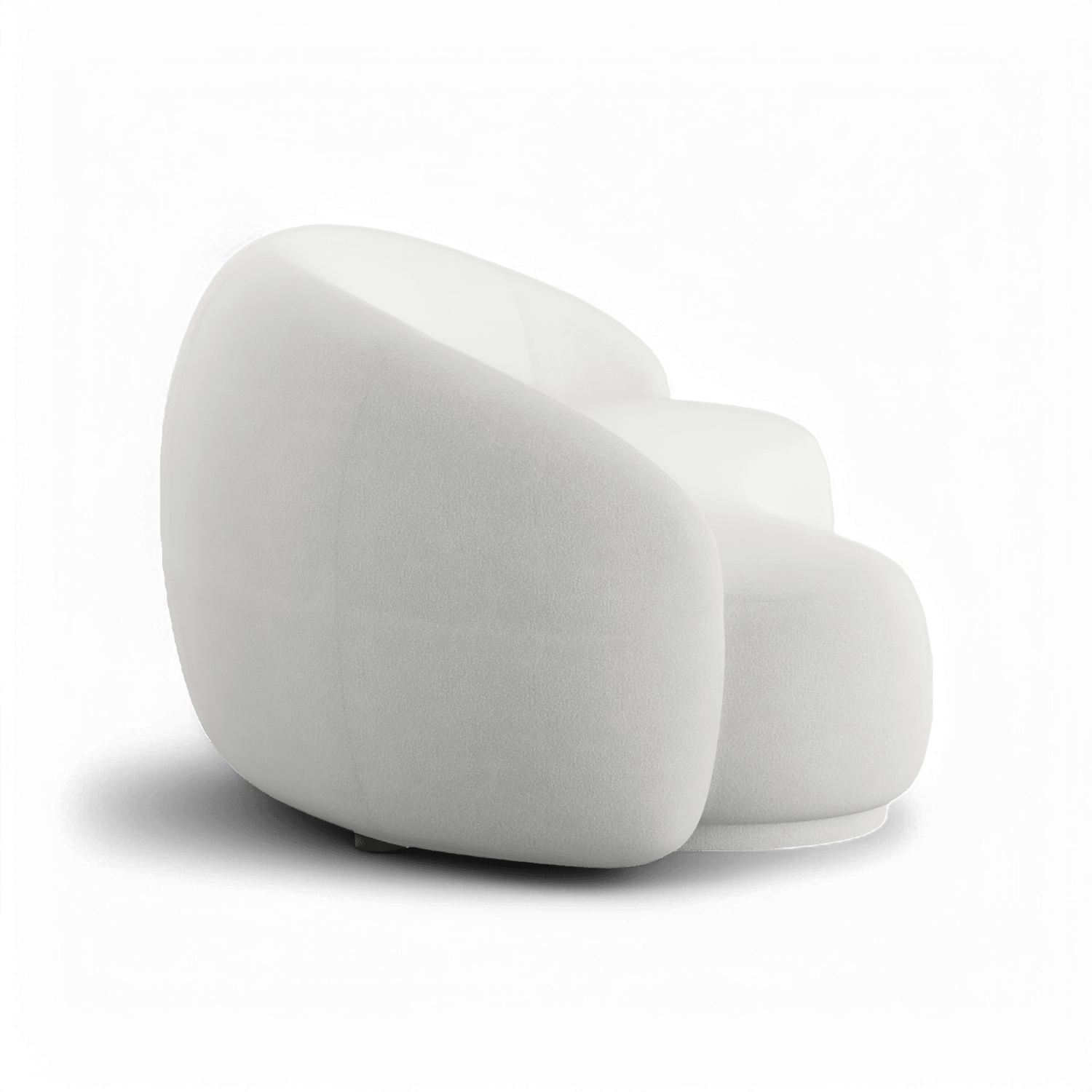 Le canapé Nido blanc est un meuble moderne et sophistiqué, alliant confort et style. Revêtu d'un luxueux tissu bouclé blanc, il respire l'élégance grâce à sa surface douce et texturée. Sa silhouette douce et incurvée, aux lignes organiques et accueillantes, sublime tout espace de vie contemporain.