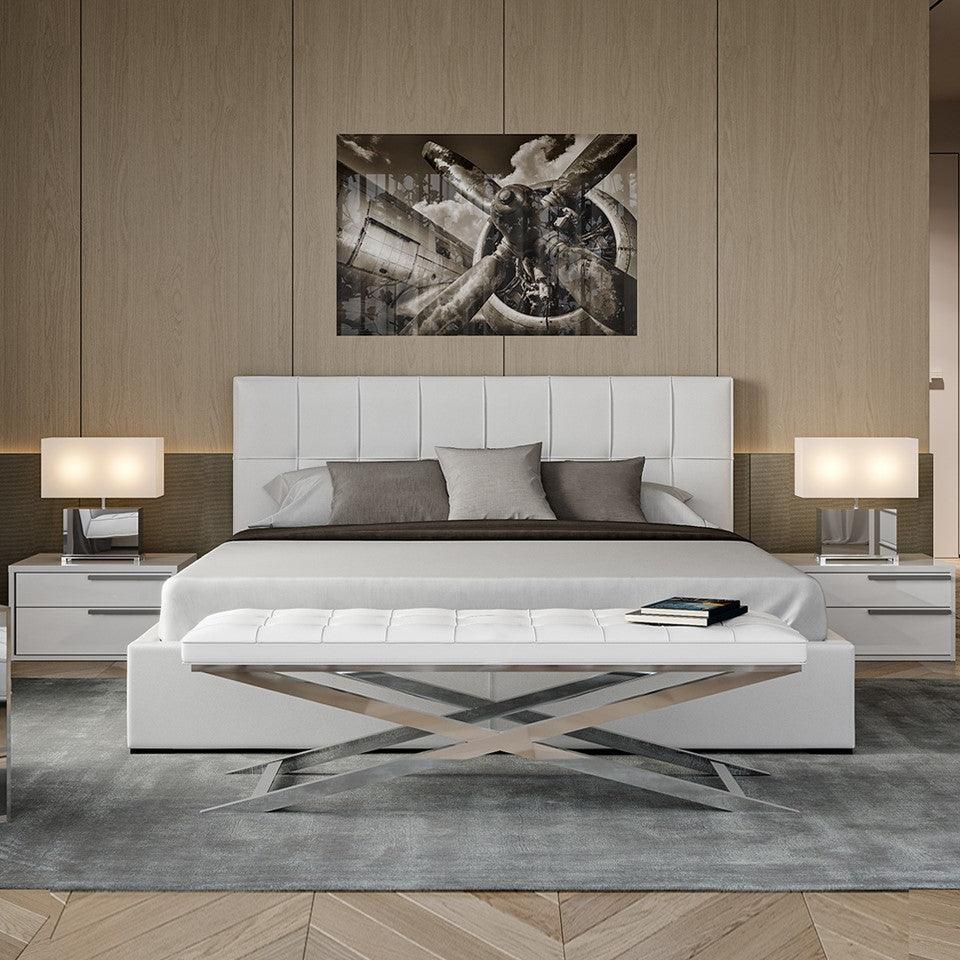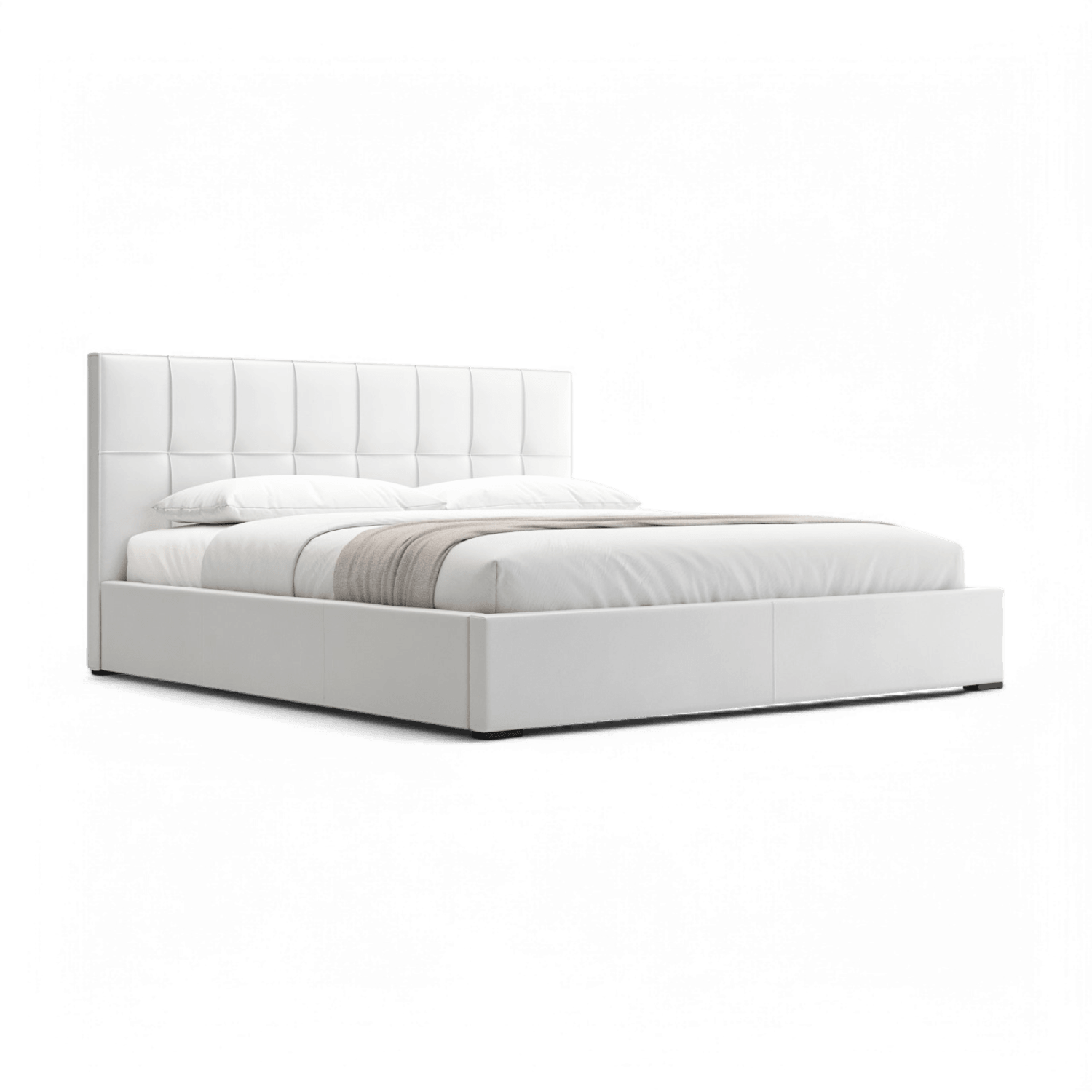 Avec le lit Oliver blanc, plus besoin de sacrifier le style au confort. Revêtu de similicuir blanc, ce lit est doté d'une tête de lit surpiquée et garnie de mousse pour plus de confort et d'élégance.