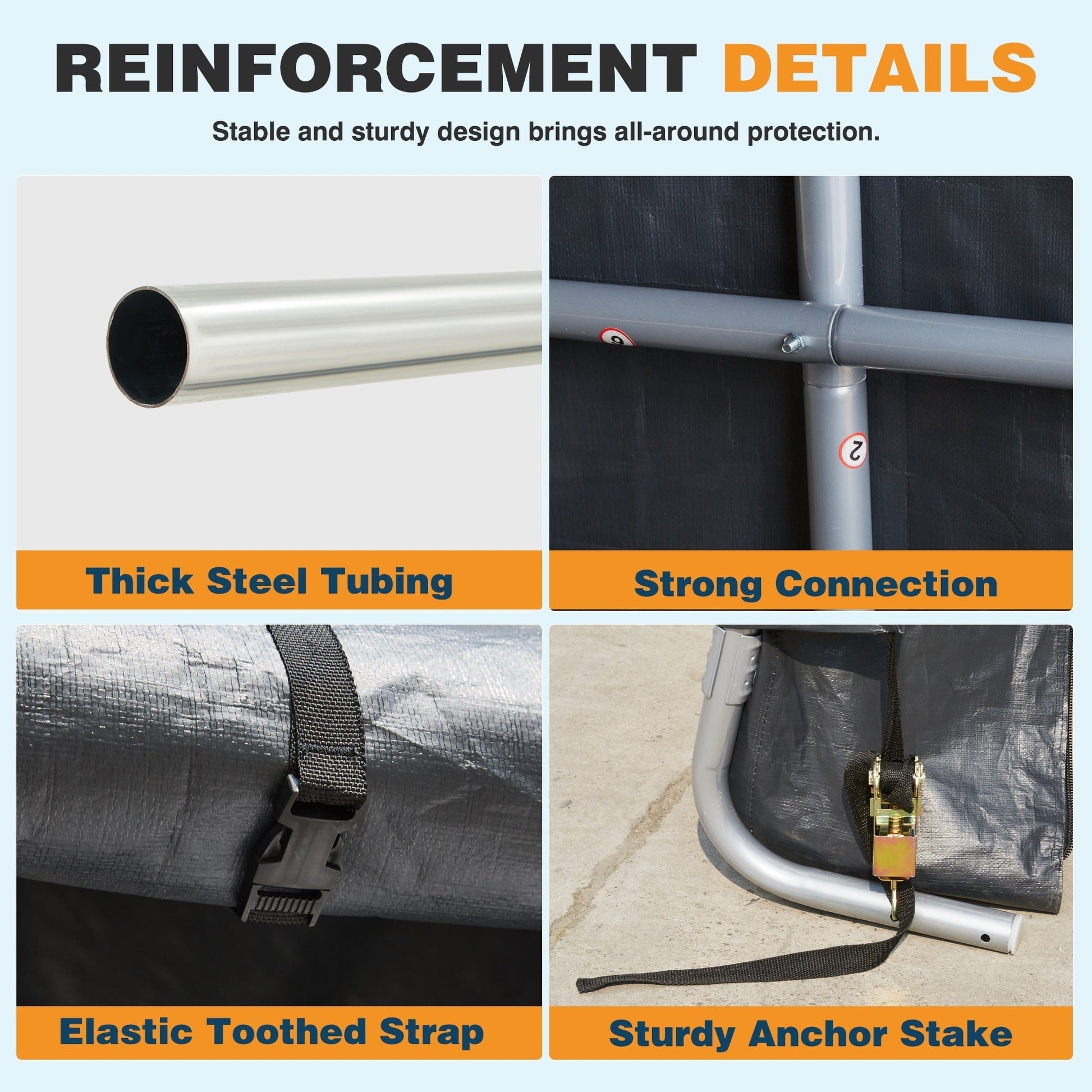 - Utilisation polyvalente : idéal pour ranger motos, vélos, outils de jardin, tondeuses à gazon, accessoires de piscine et bois de chauffage. Convient aux jardins, cours, terrasses et espaces extérieurs.