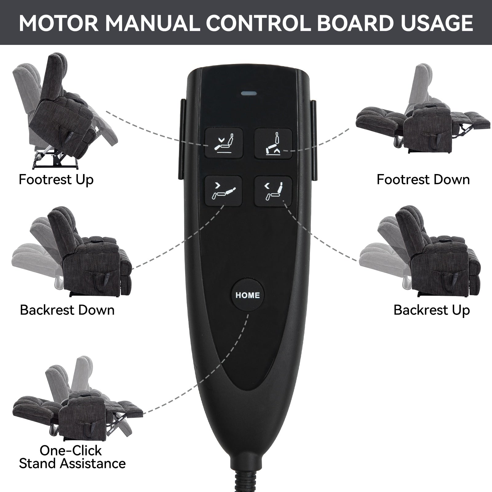- Fauteuil releveur électrique à double moteur : Ce fauteuil est équipé d'un système à double moteur permettant un contrôle indépendant du dossier et du repose-pieds. D'une simple pression sur la télécommande, vous pouvez incliner le fauteuil à près de 180 degrés ou activer la fonction releveur, qui vous aide à vous lever en douceur et en silence. Idéal pour les personnes âgées, celles souffrant de problèmes d'équilibre aux jambes ou au dos, ou celles qui se remettent d'une opération.