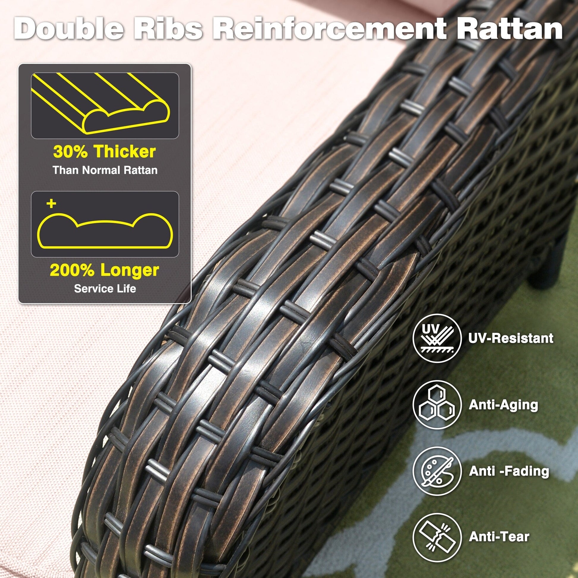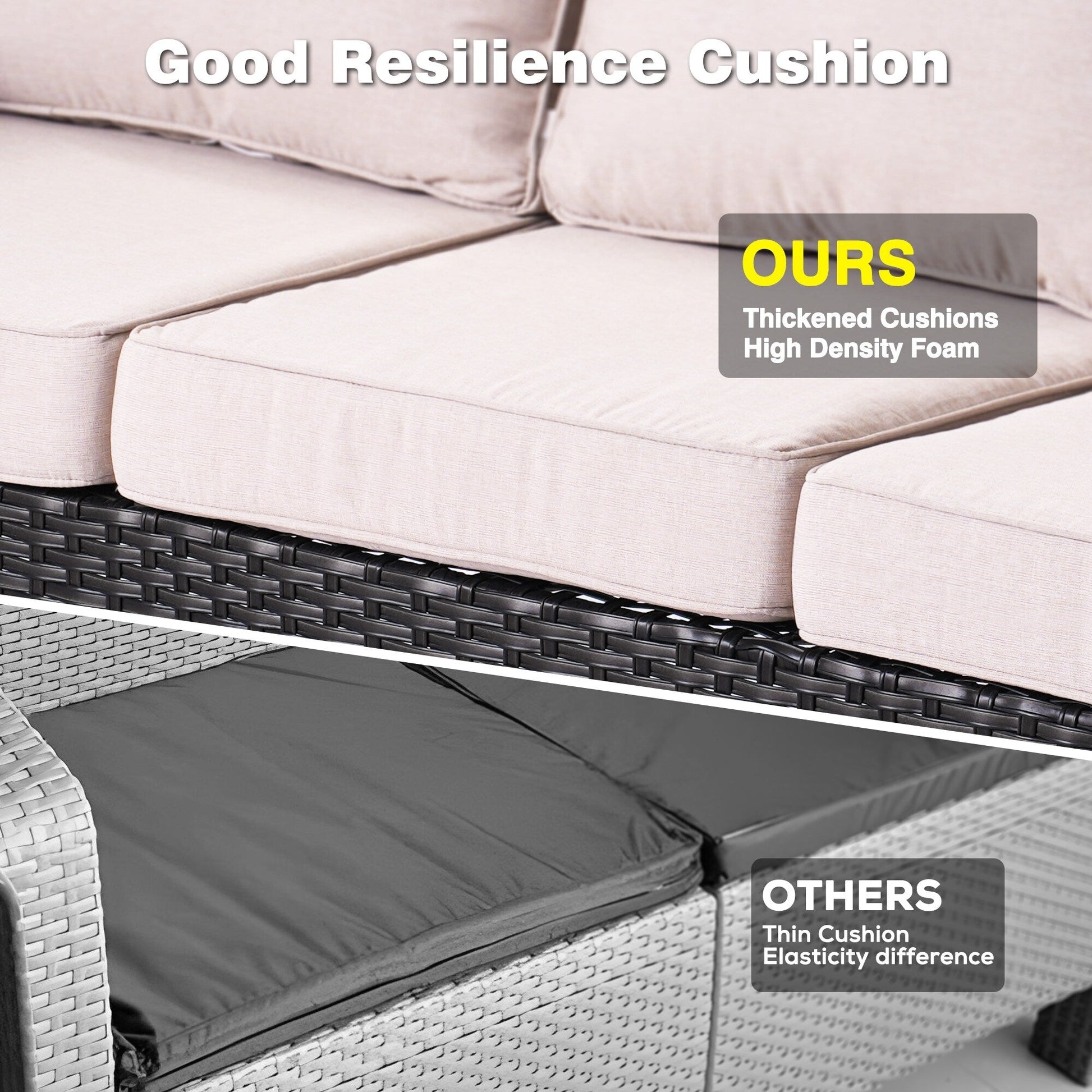 Créez une oasis de détente en plein air avec l'ensemble de salon de jardin OVIOS 5 pièces en osier. Cet ensemble comprend deux fauteuils, un canapé et deux poufs, tous fabriqués en résine tressée de qualité professionnelle, résistant aux intempéries et offrant une durabilité accrue. Les épais coussins d'assise en éponge offrent confort et détente, tandis que les dossiers hauts et les accoudoirs incurvés offrent un soutien ergonomique. Grâce à ses housses imperméables et faciles à nettoyer, cet ensemble est parfait pour votre terrasse, votre véranda, votre bord de piscine ou votre jardin. Choisissez parmi plusieurs coloris pour sublimer votre espace extérieur et l'adapter à votre style.