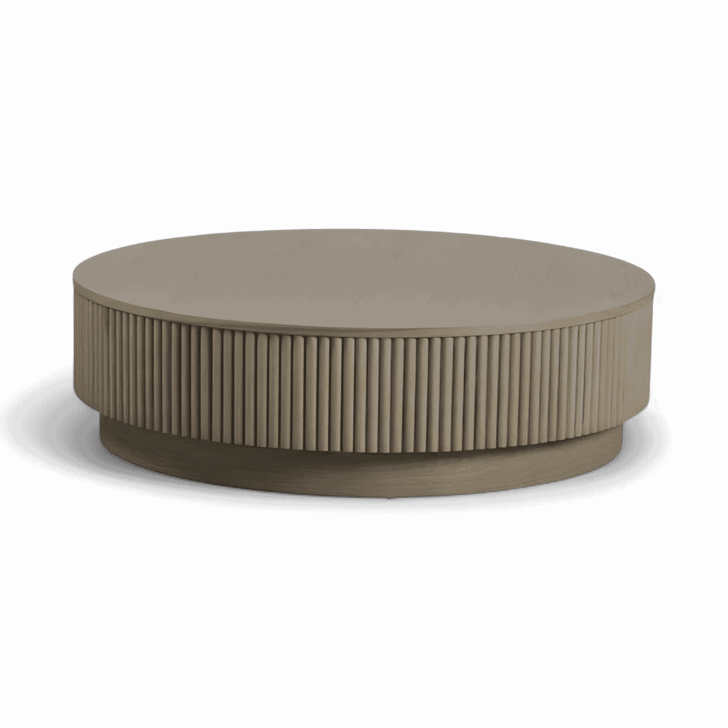 La table basse Oxford en chêne grège est un atout majeur pour tout espace de vie. Sa silhouette ronde et épurée, ornée d'un élégant placage chêne grège, est sublimée par un élégant motif de lattes de bois verticales, apportant une touche de sophistication et de texture moderne.
