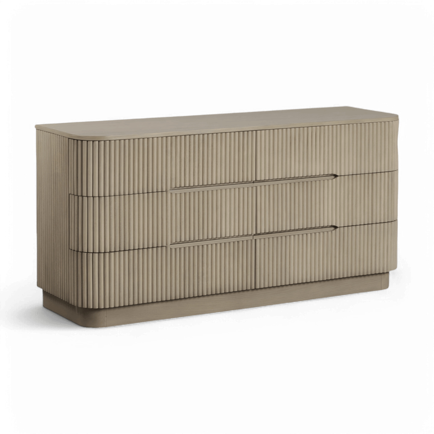 Les lattes verticales en bois sur les côtés et les façades des tiroirs lui confèrent un style à la fois classique et contemporain, alliant texture et attrait visuel. Grâce à son savoir-faire artisanal et à son esthétique polyvalente, la commode Oxford en chêne grège est un ajout à la fois élégant et pratique à toute chambre.