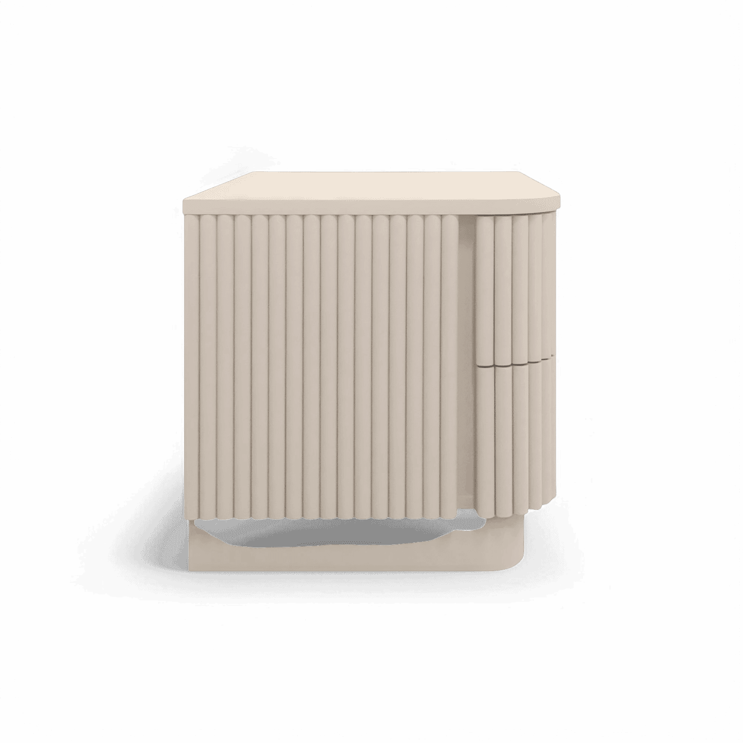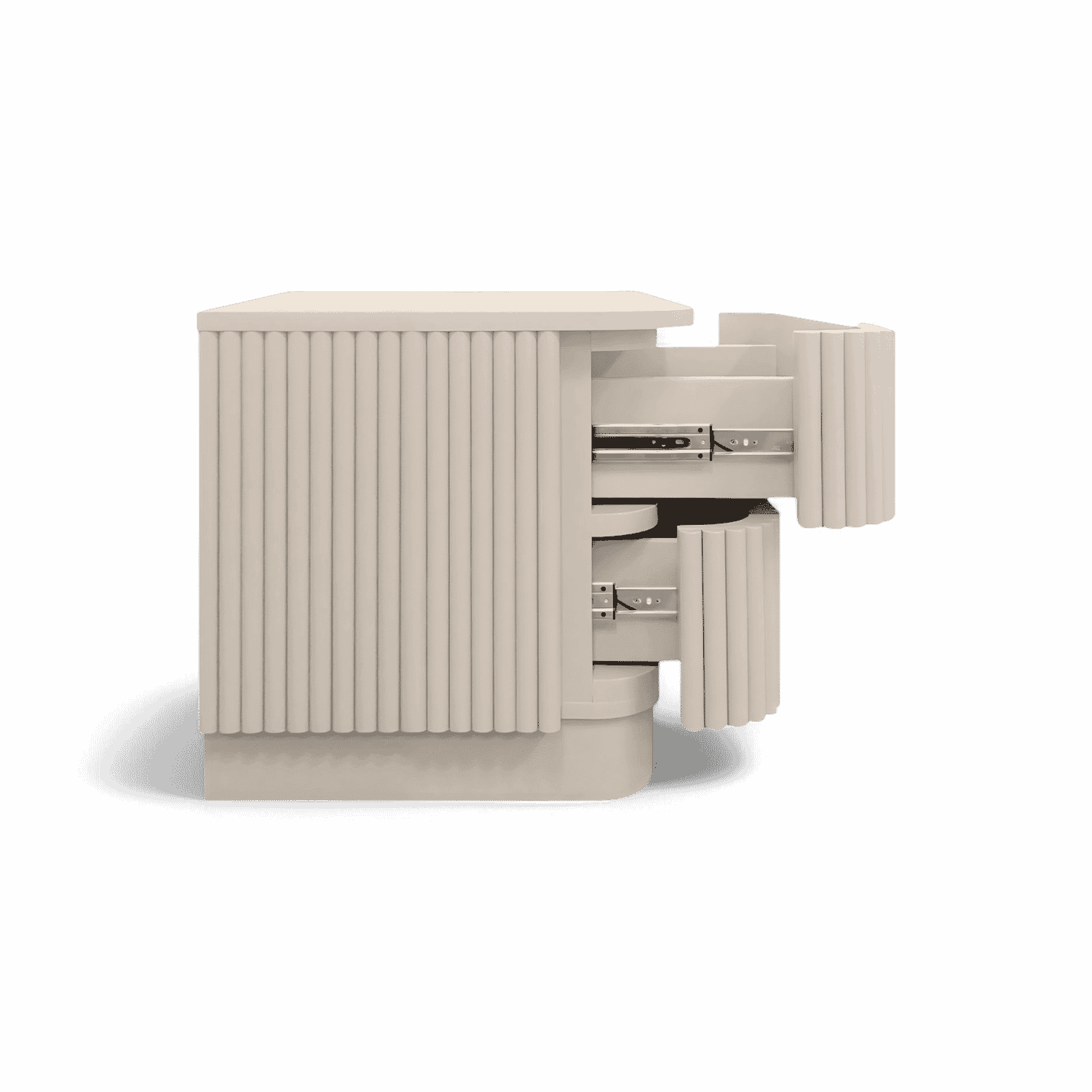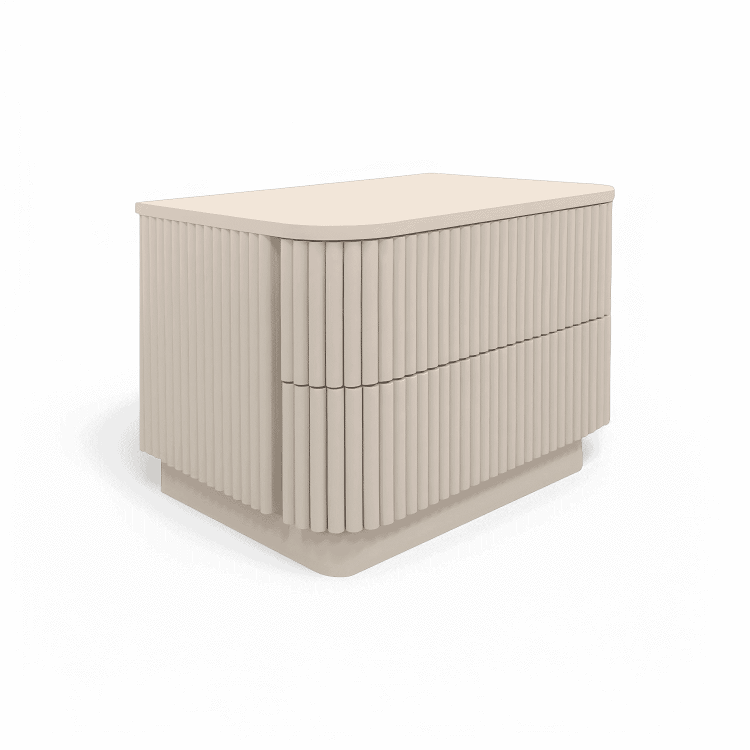 La table de chevet présente une façade gracieusement incurvée, ajoutant une touche de raffinement à son design. Deux tiroirs spacieux offrent un rangement fonctionnel pour les essentiels de chevet, alliant harmonieusement esthétique et fonctionnalité. Associée à d'autres meubles aux tons albâtre ou utilisée comme pièce maîtresse, la table de chevet Oxford crée une atmosphère paisible et accueillante dans n'importe quel espace.