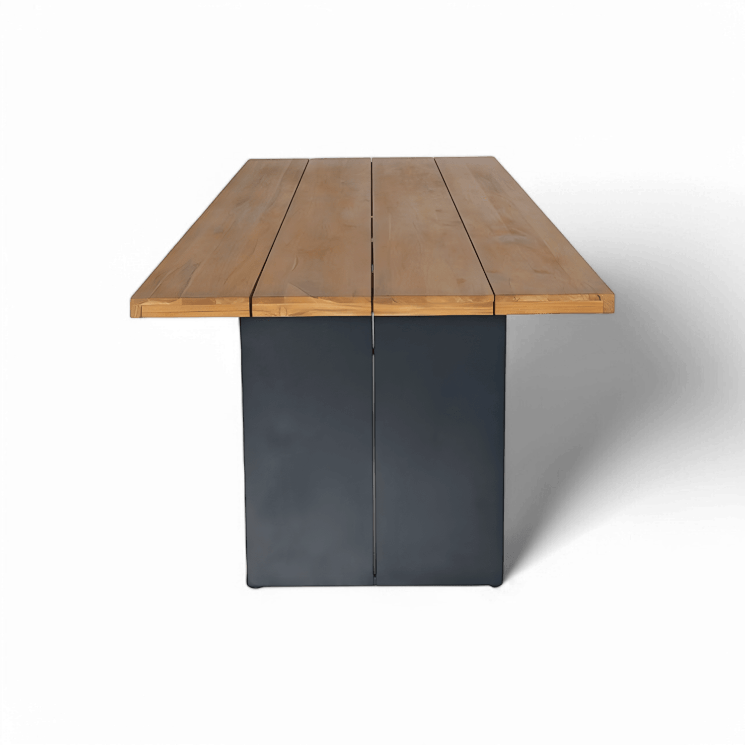 Matériau du plateau : teck massif | Matériau des pieds : aluminium thermolaqué