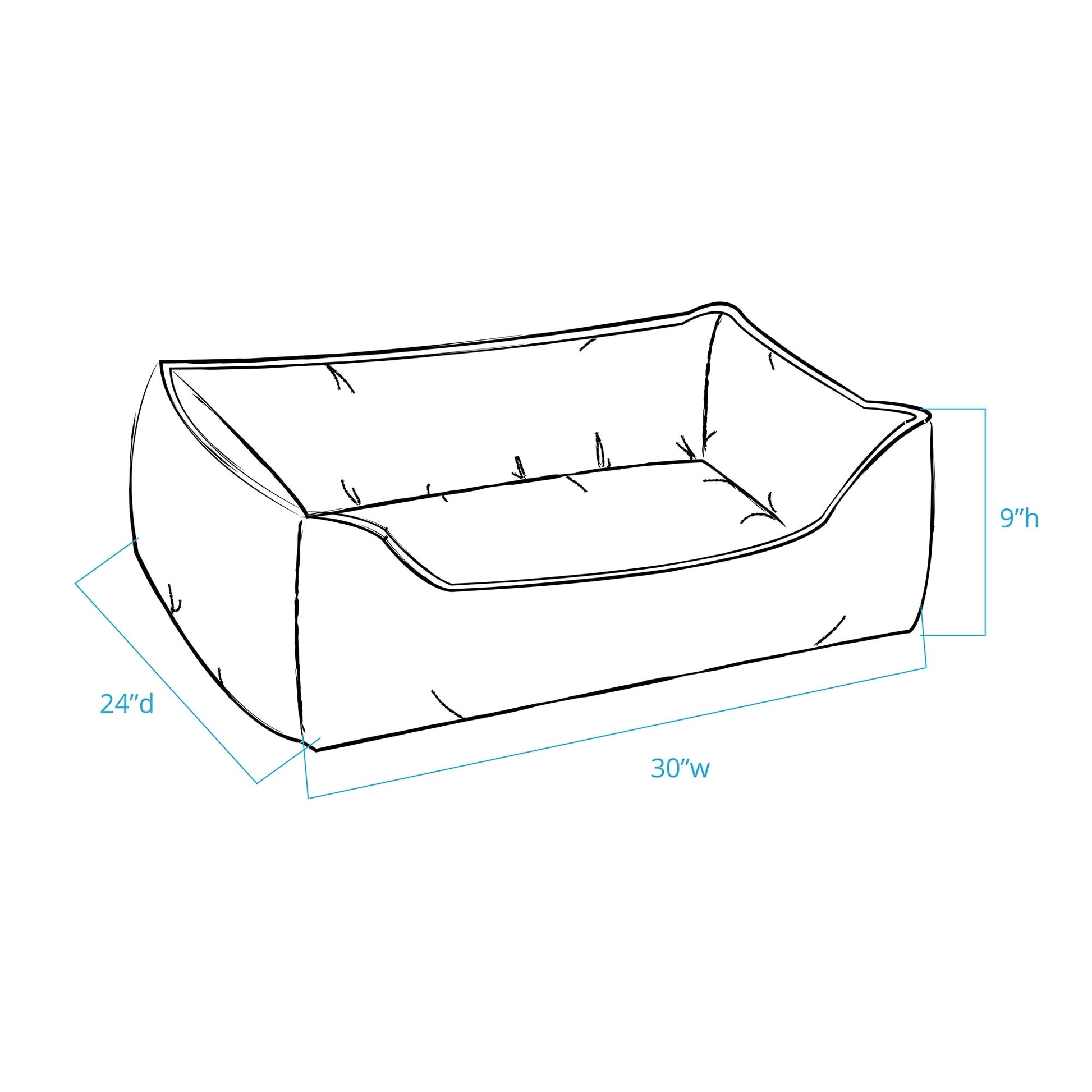 - Petit : 30 pouces de large x 24 pouces de profondeur x 9 pouces de haut (recommandé pour les animaux jusqu'à 15 livres)