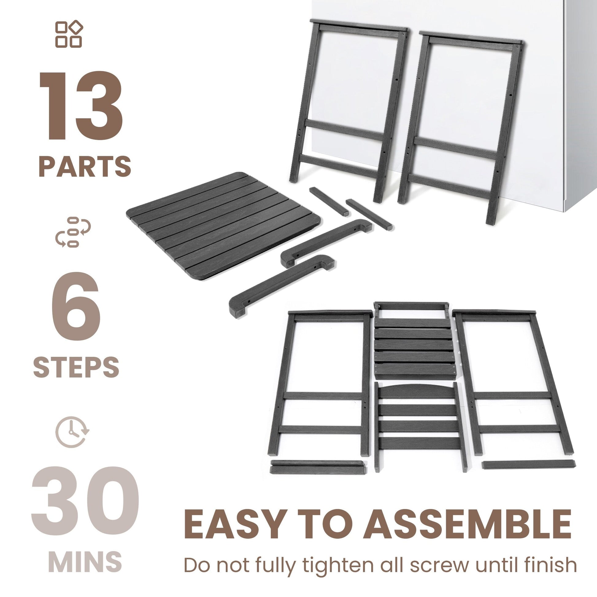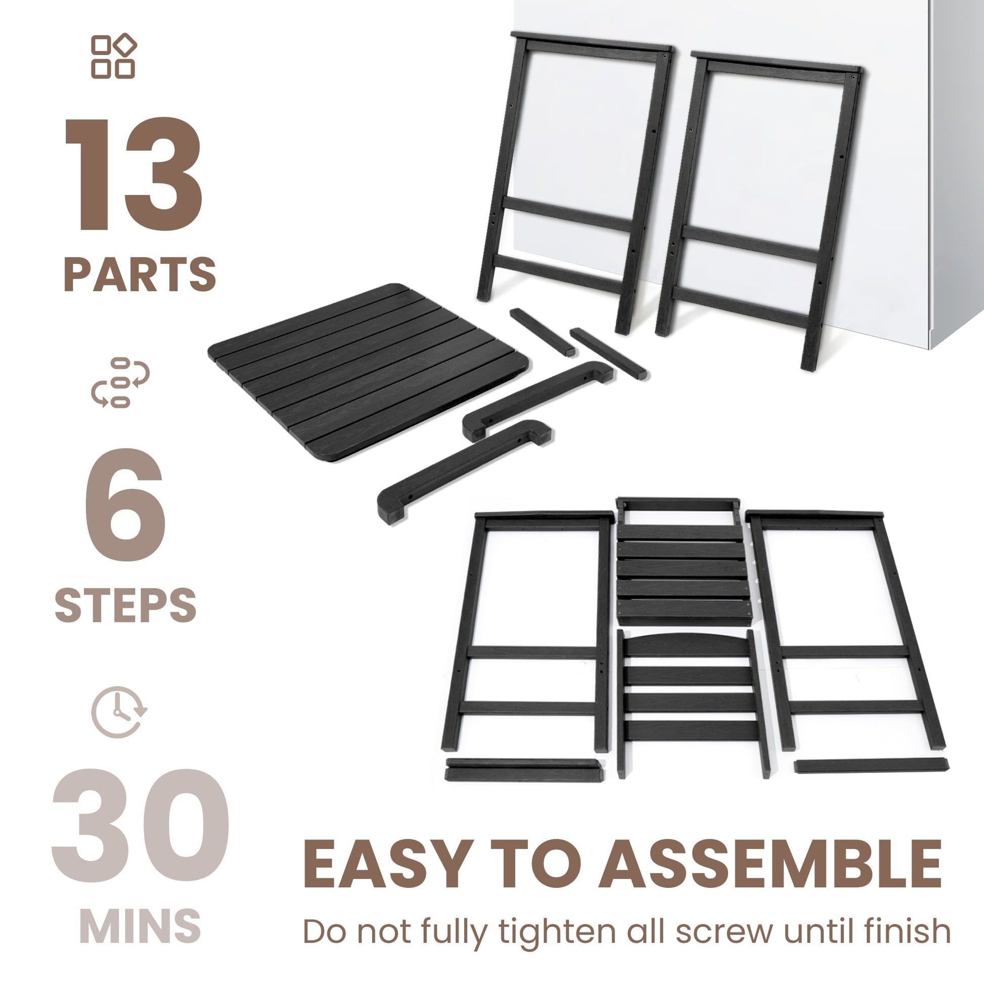 Ensemble de 3 chaises hautes Adirondack en plastique pour patio